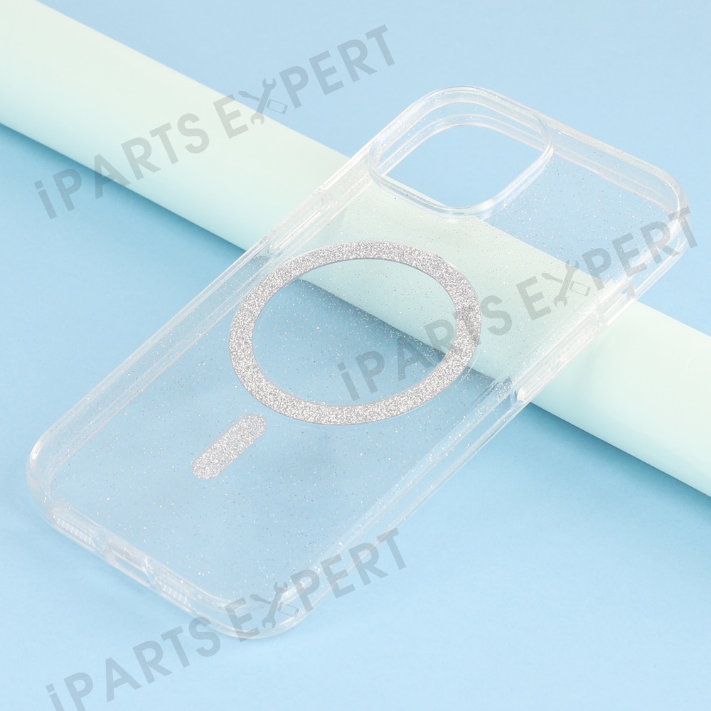 For iPhone 14 Case Compatible with MagSafe 2.0mm PC + TPU Glitter Phone Cover - Transparent