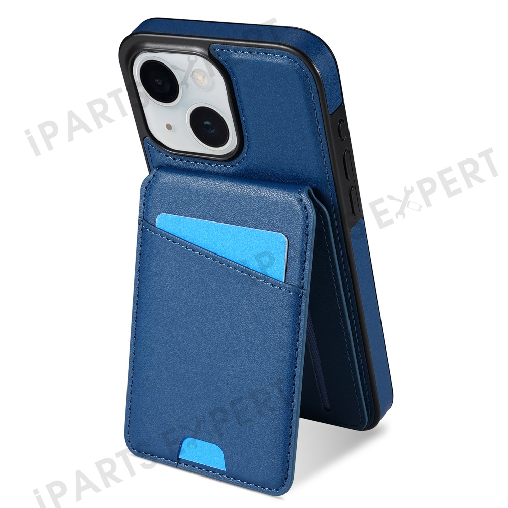 For iPhone 14 Case Compatible with MagSafe Detachable Card Holder Kickstand Leather Phone Back Cover - Blue