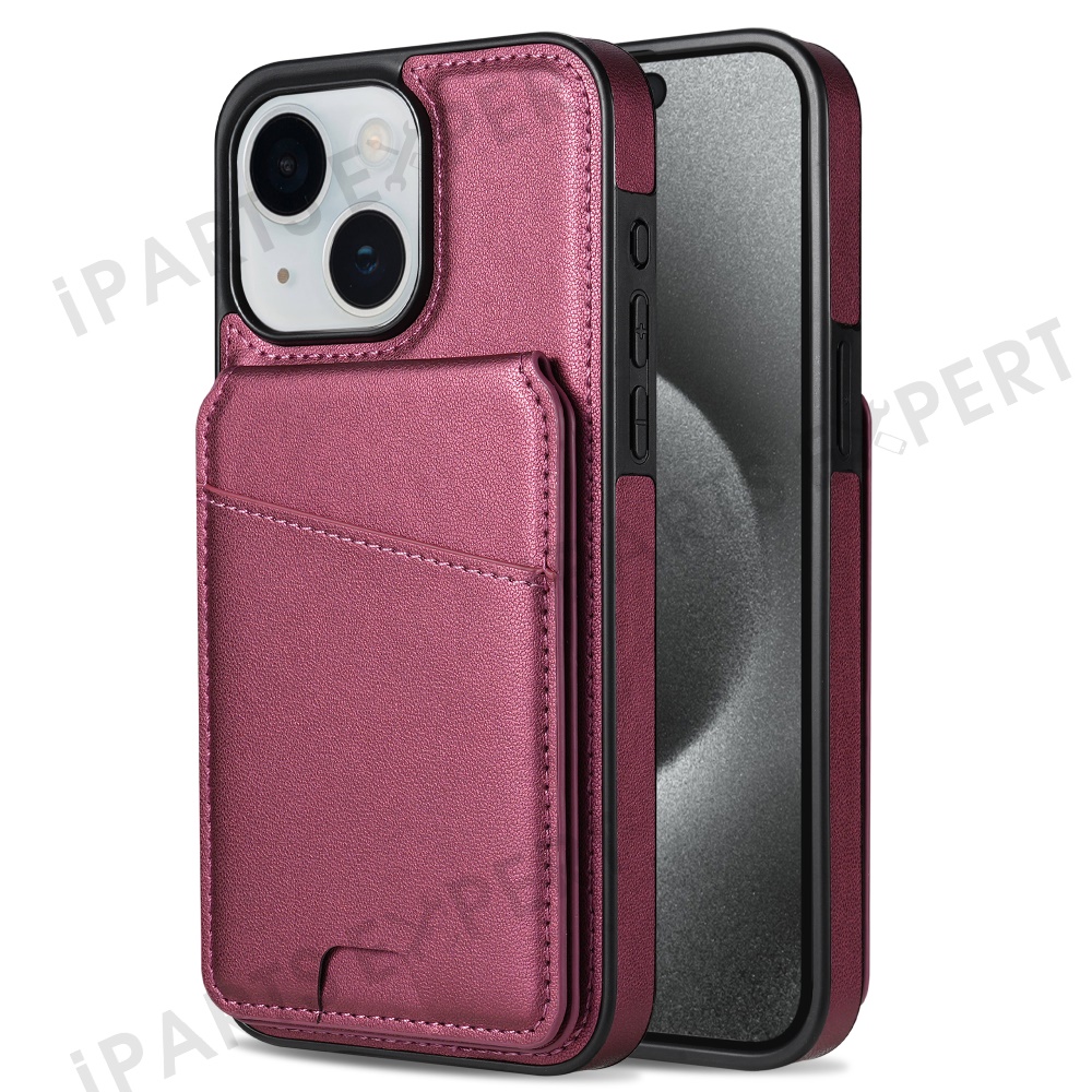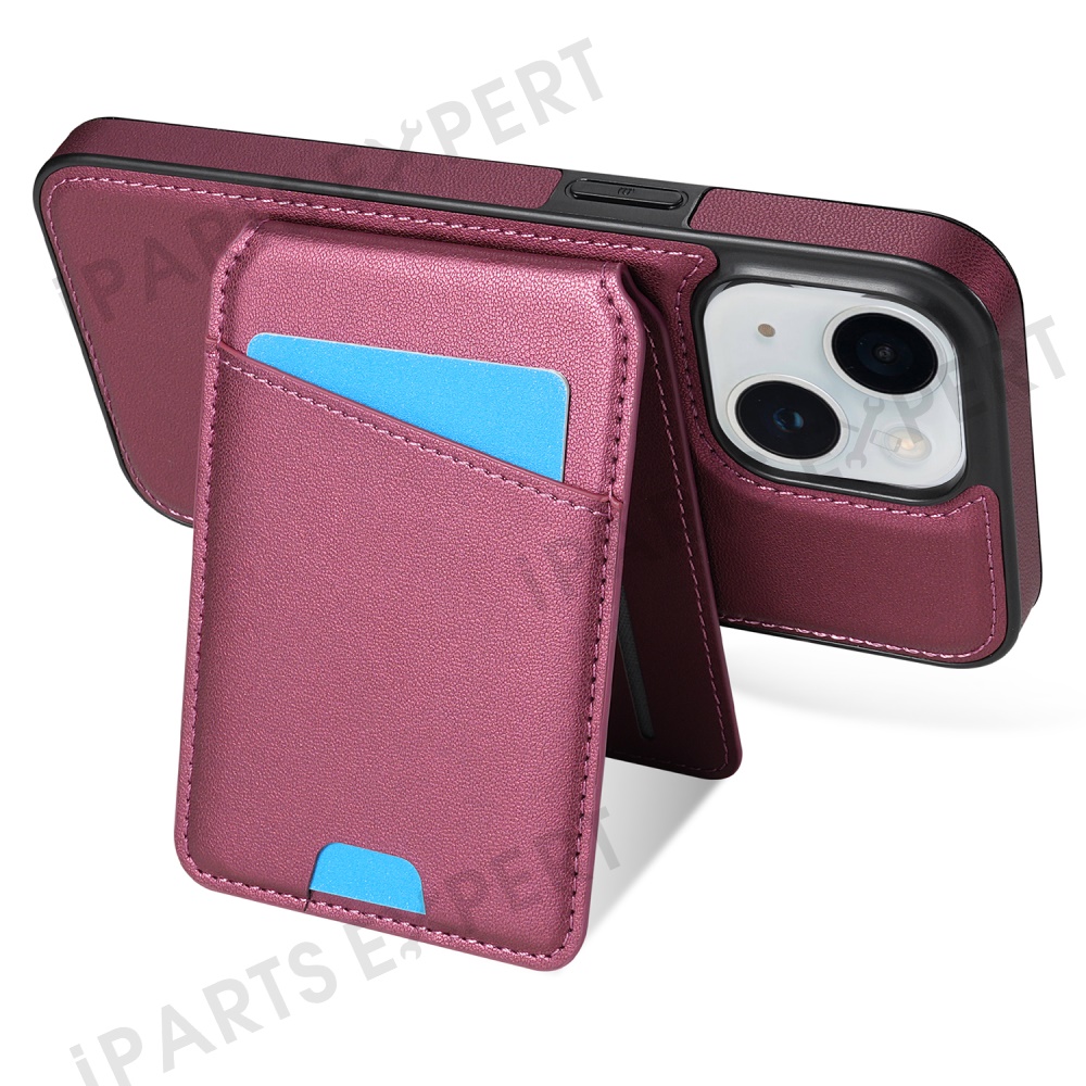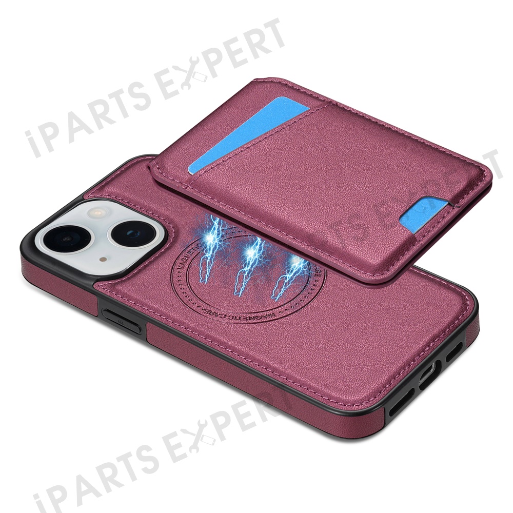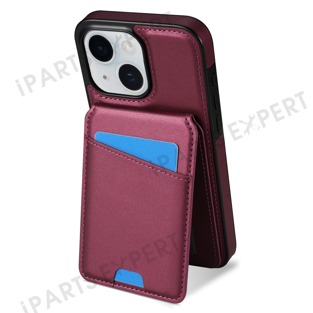 For iPhone 14 Case Compatible with MagSafe Detachable Card Holder Kickstand Leather Phone Back Cover - Red