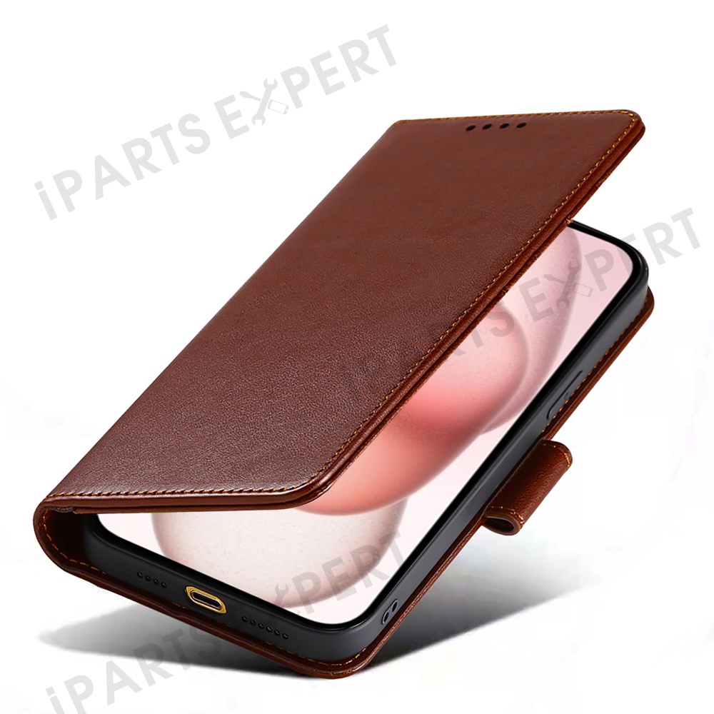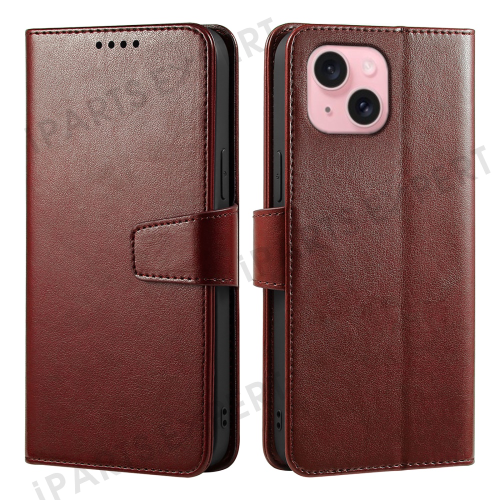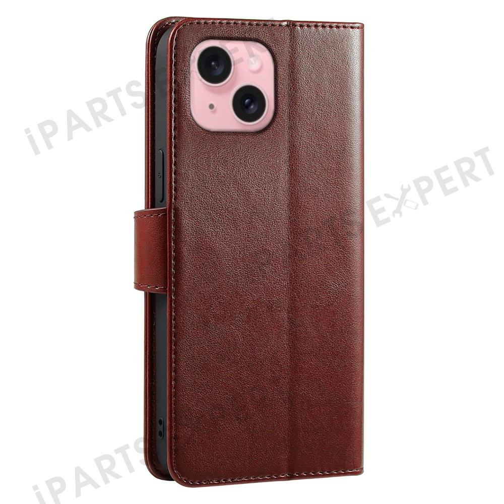 For iPhone 14 Case Stand Card Holder Wallet Leather Phone Cover - Brown