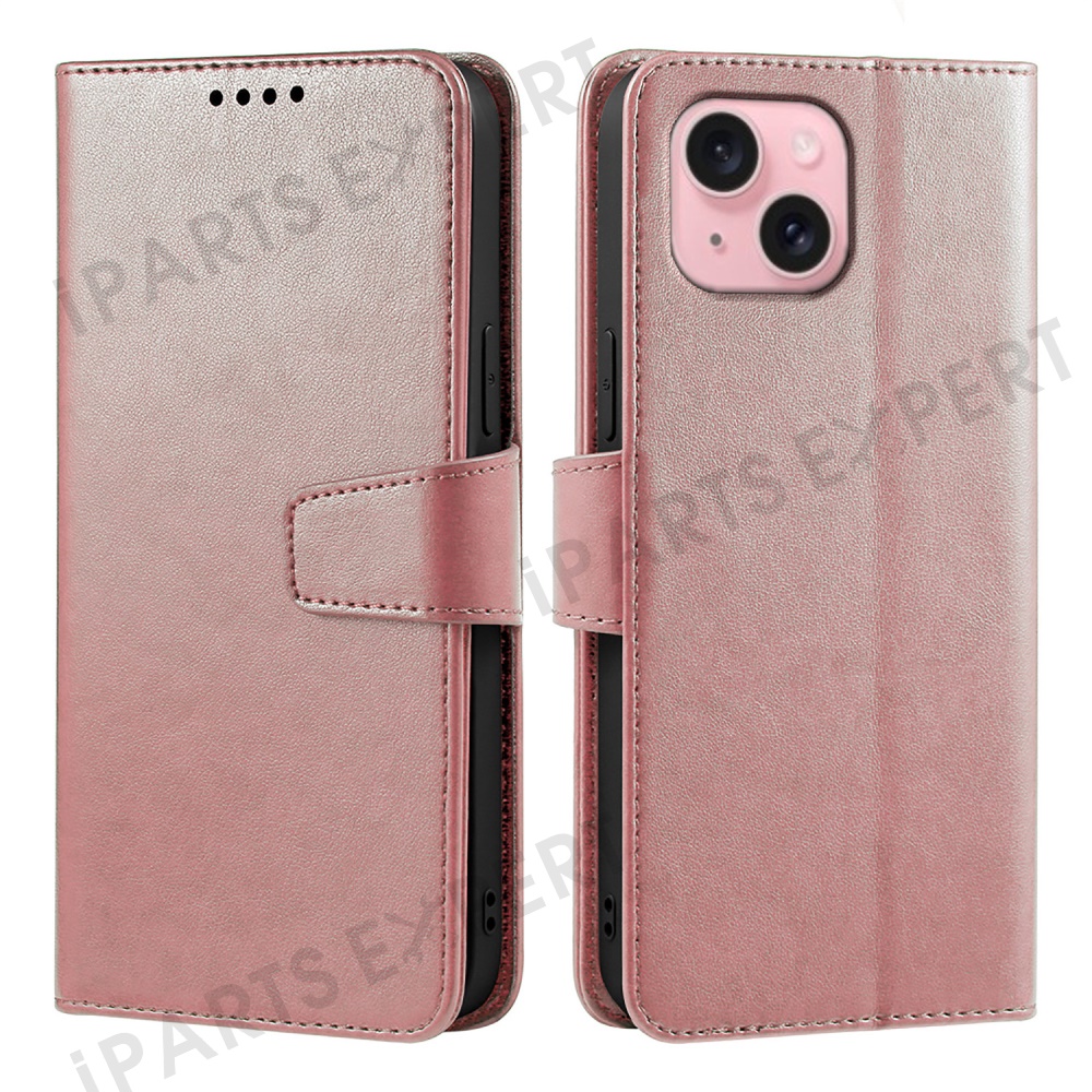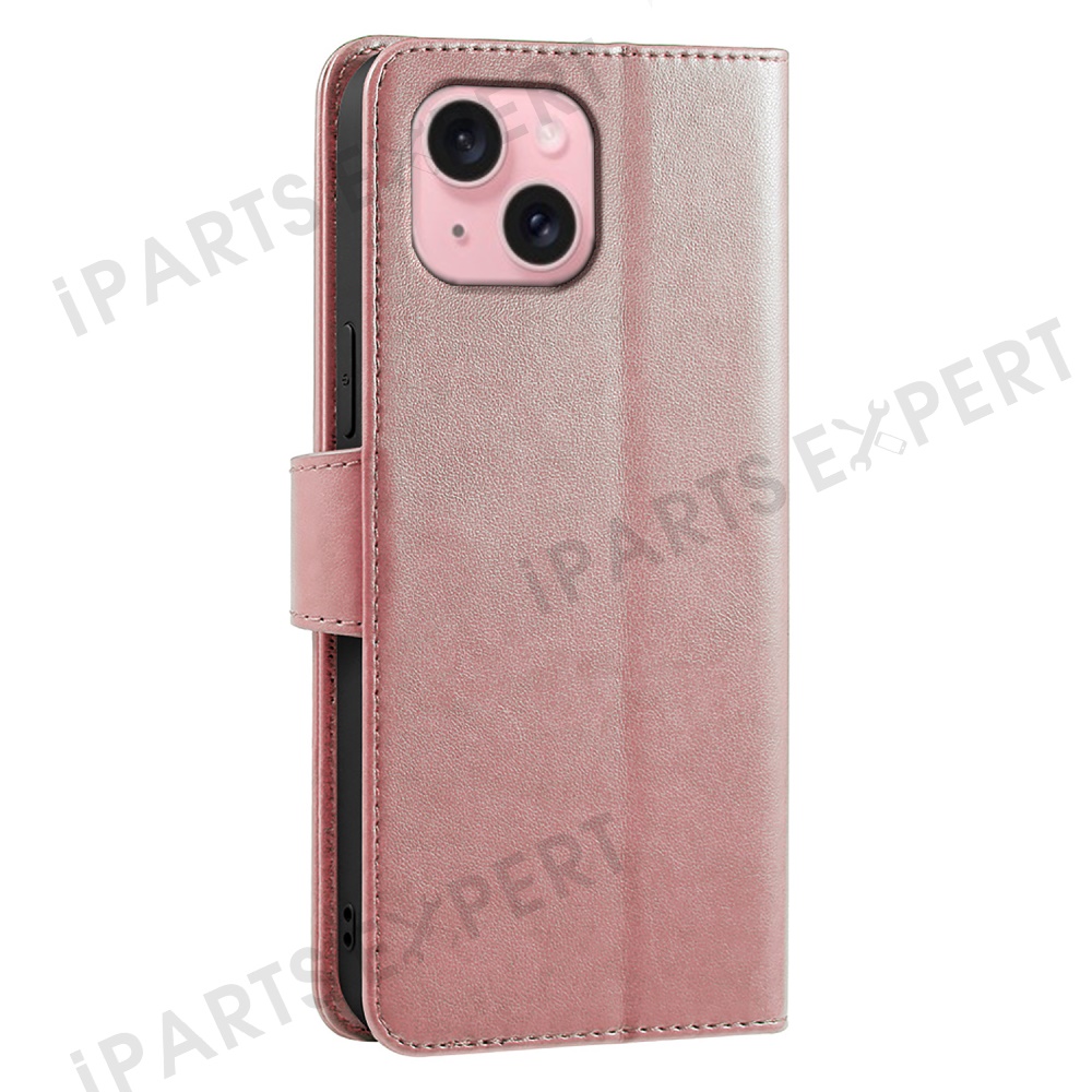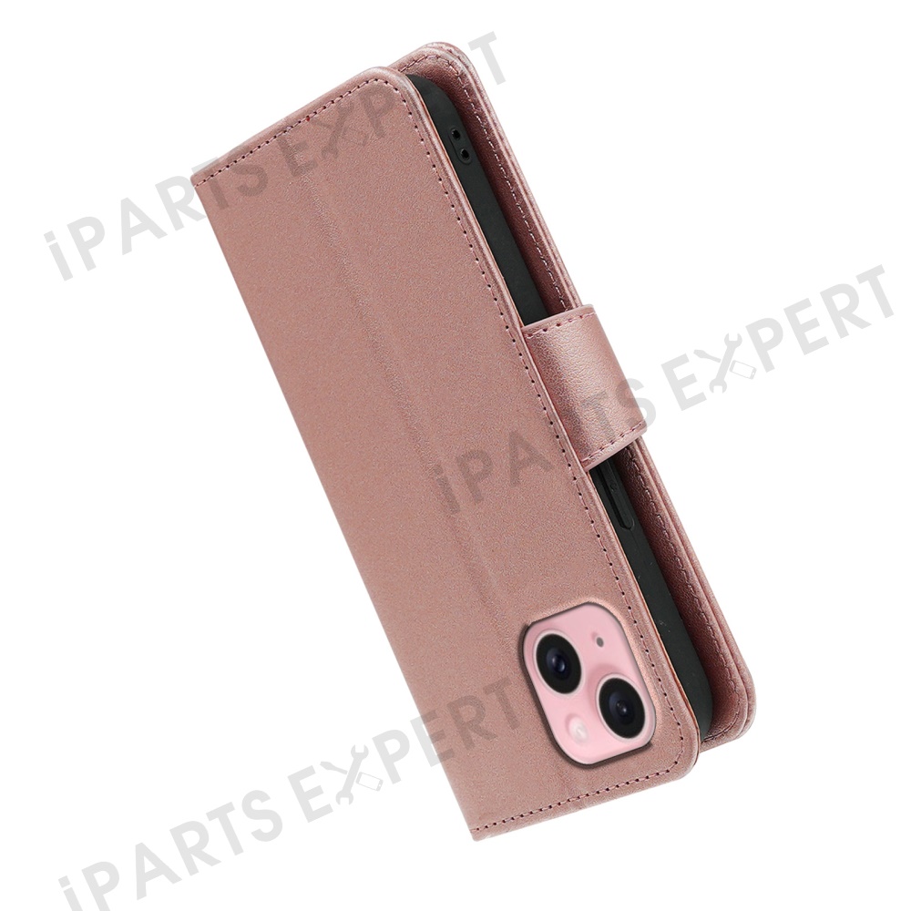 For iPhone 14 Case Stand Card Holder Wallet Leather Phone Cover - Rose Gold