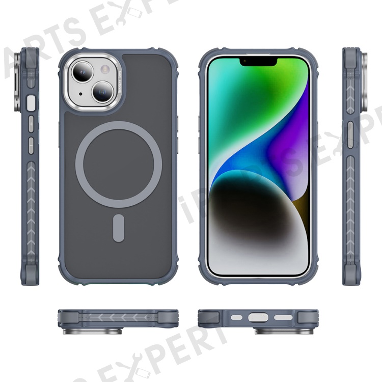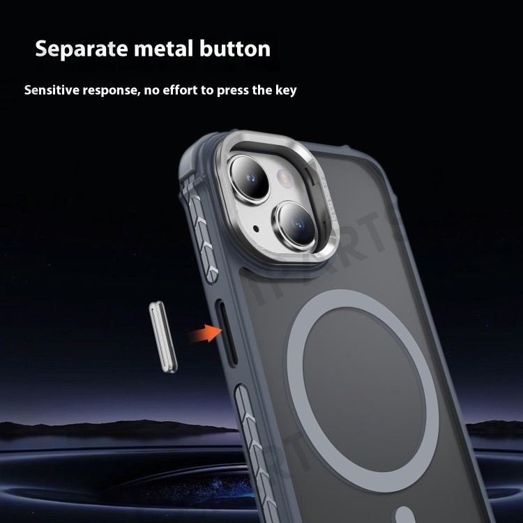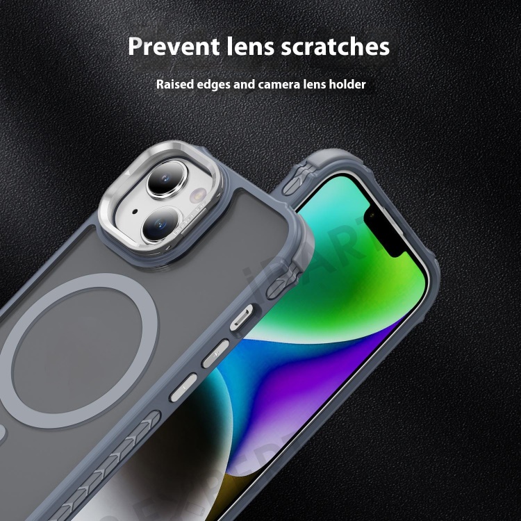 For iPhone 14 Case with Lens Kickstand Matte Back Cover Compatible with MagSafe - Grey