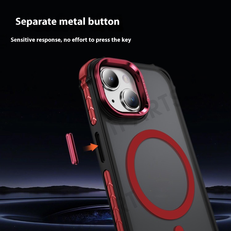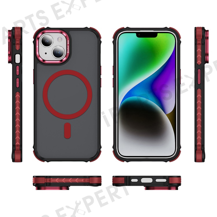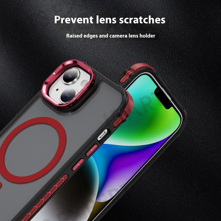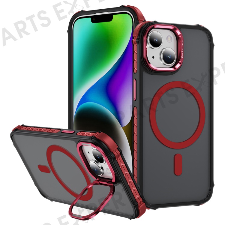 For iPhone 14 Case with Lens Kickstand Matte Back Cover Compatible with MagSafe - Red