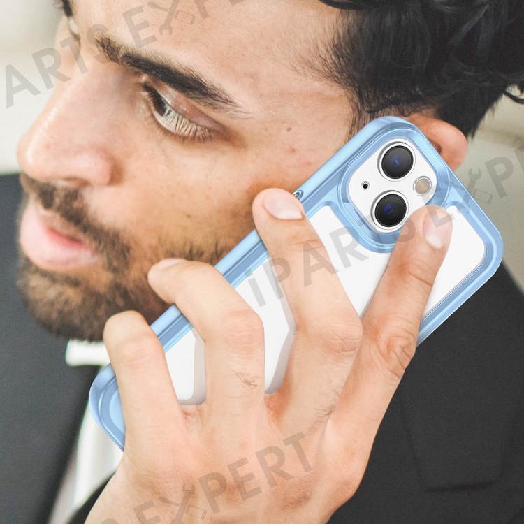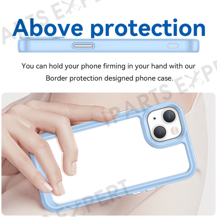 For iPhone 14 Plus 6.7 inch TPU + Acrylic Hybrid Phone Case Anti-drop Anti-fingerprint Back Cover - Blue