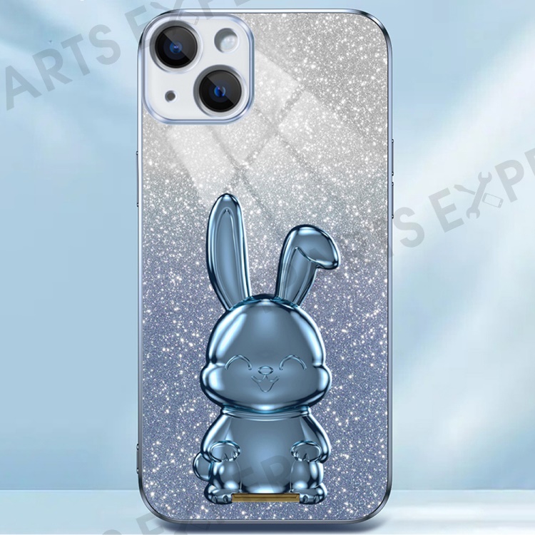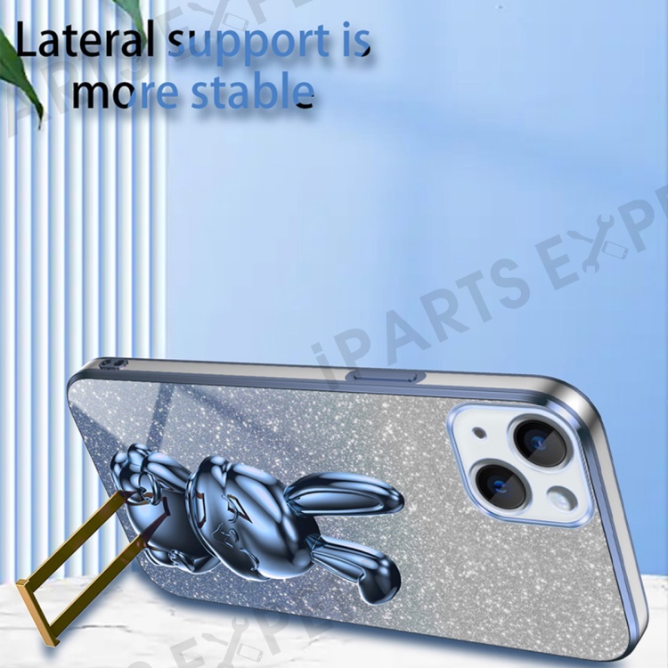 For iPhone 14 Plus Shockproof Cute Rabbit Glitter Case Phone Cover with Kickstand - Blue