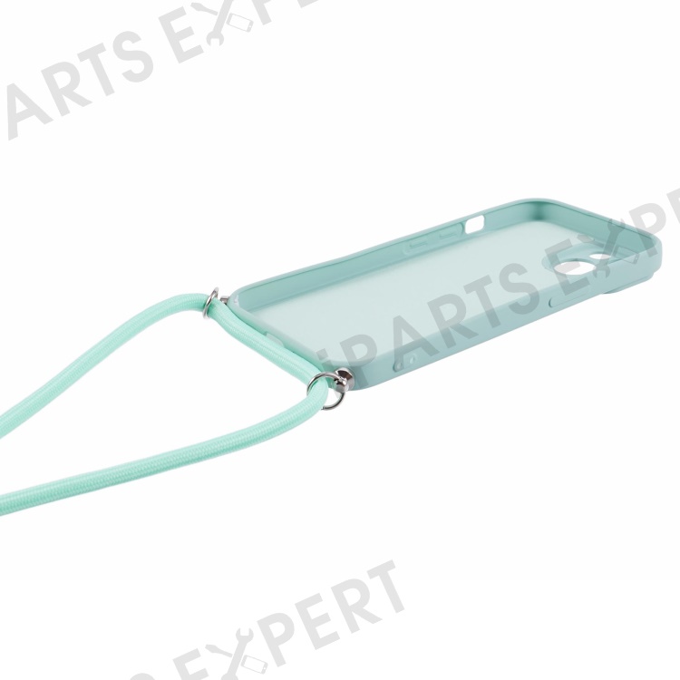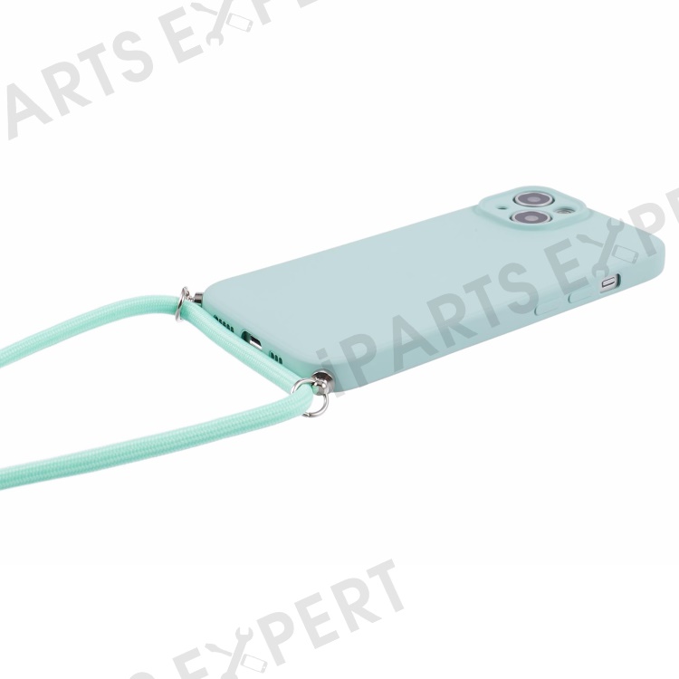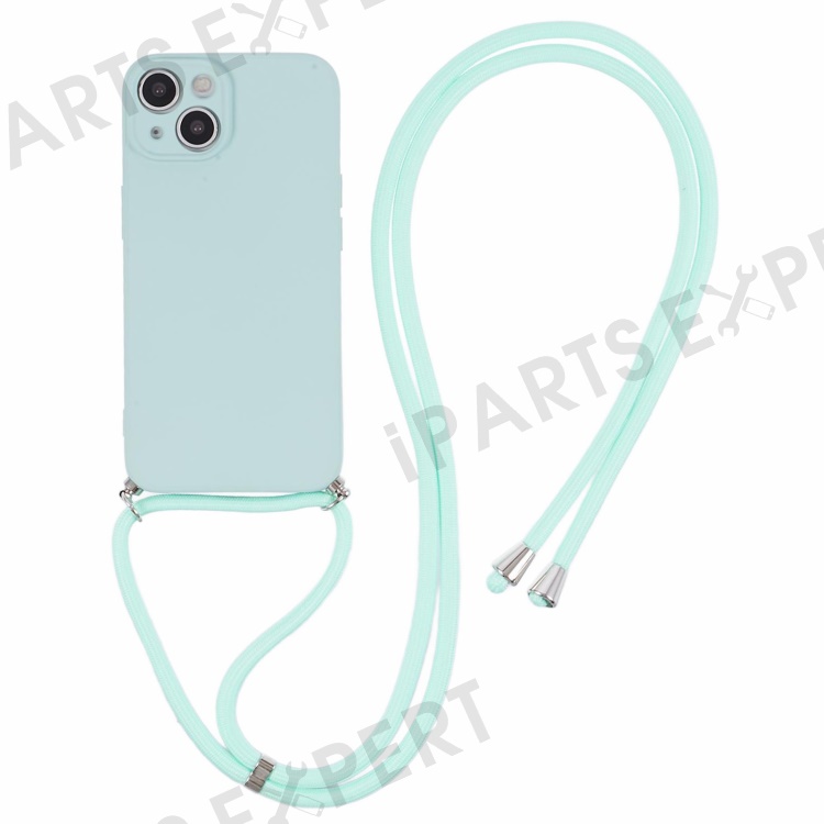 For iPhone 14 Plus Case Candy Color TPU Phone Cover with Long Lanyard - Baby Blue