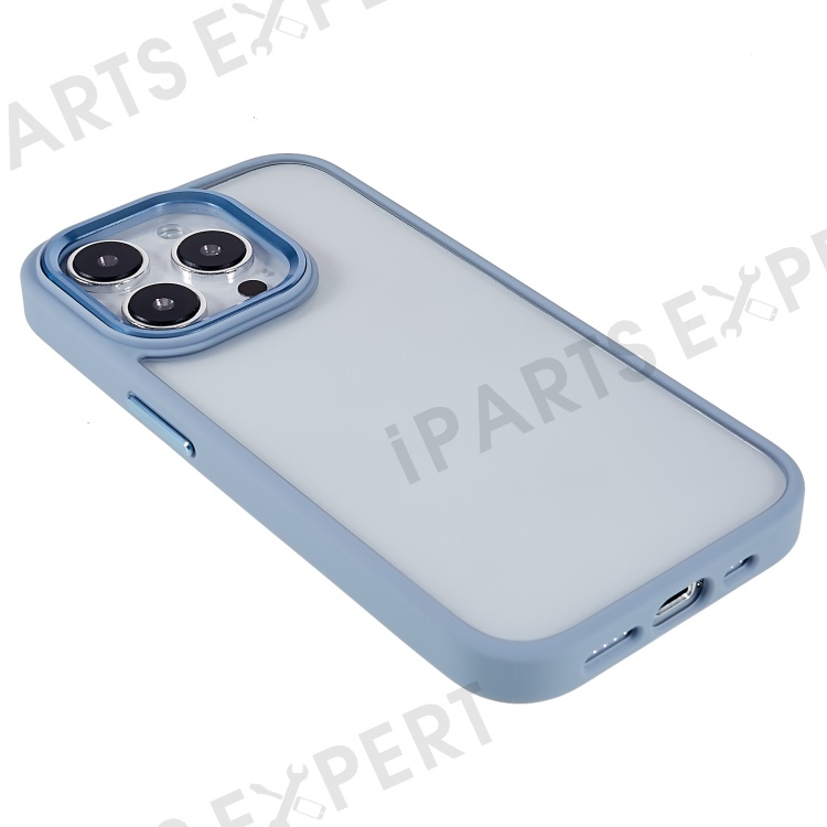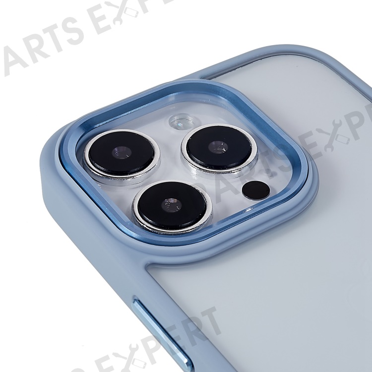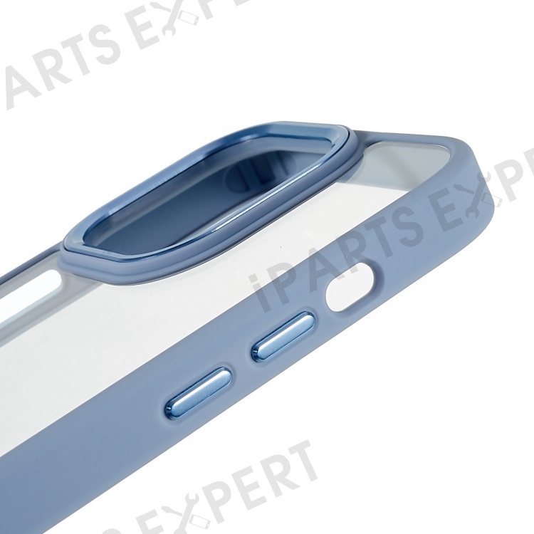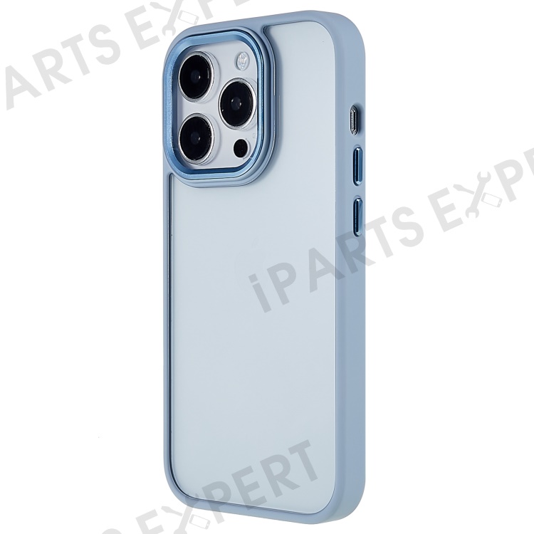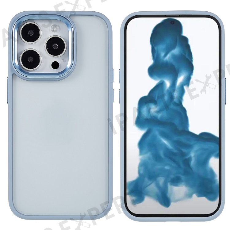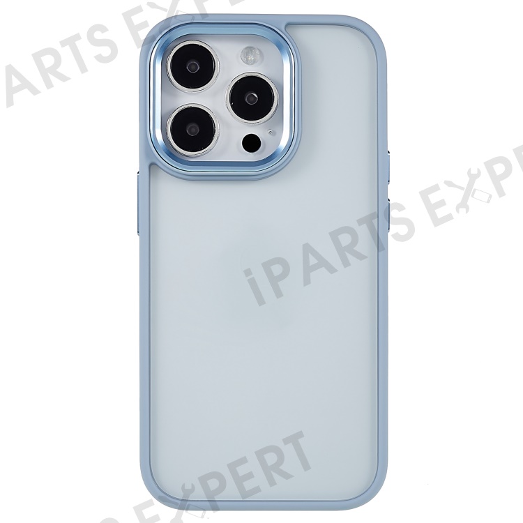For iPhone 14 Pro 6.1 inch Clear Back PC + TPU Phone Cover Metal Camera Lens Frame Anti-dirt Metal Buttons Case - Baby Blue