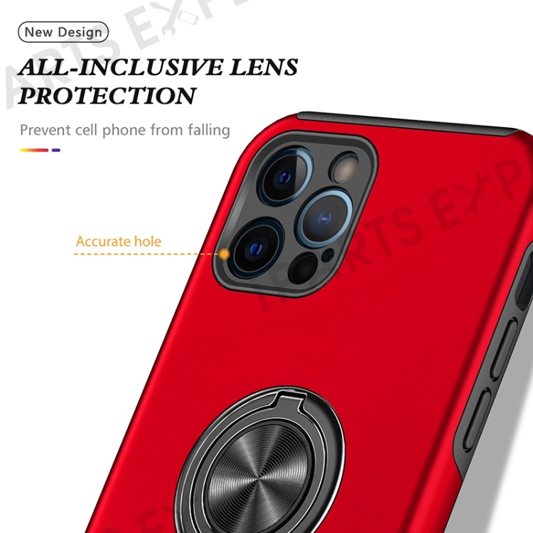 For iPhone 14 Pro 6.1 inch Hard PC+Soft TPU Well-protected Anti-wear Case Ring Car Mount Kickstand Anti-drop Phone Shell Cover - Red