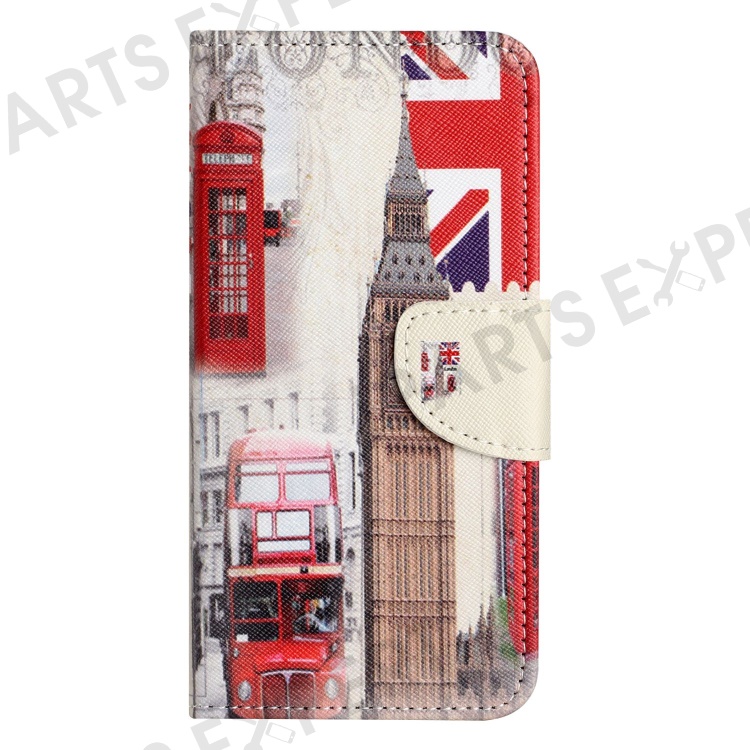 For iPhone 14 Pro 6.1 inch PU Leather+TPU Pattern Printing Phone Case Cross Texture Anti-drop Wallet Flip Shell with Stand - London Big Ben