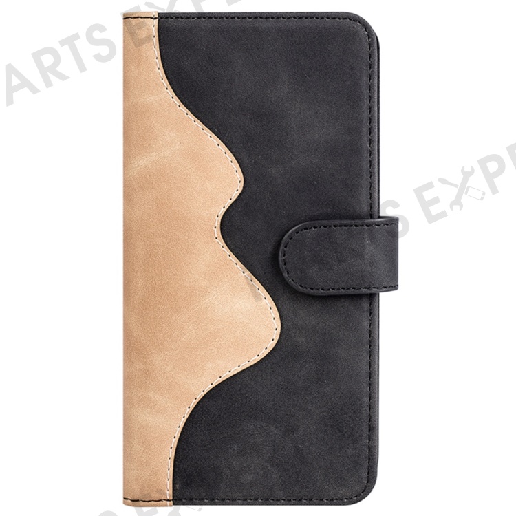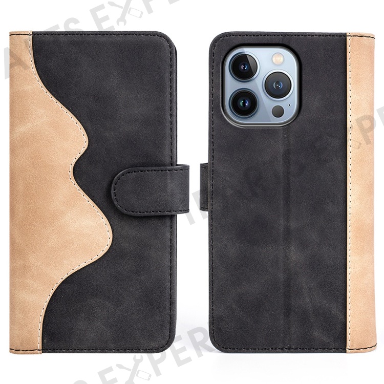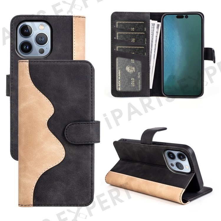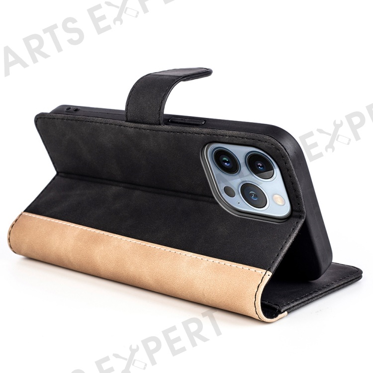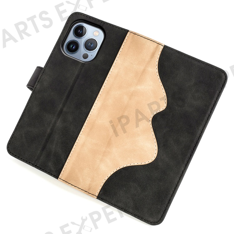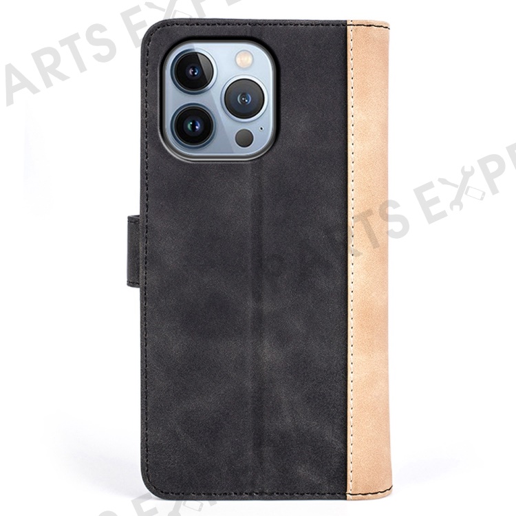For iPhone 14 Pro 6.1 inch Splicing Design Protective Case Drop Resistant PU Leather Wallet Stand Phone Shell - Black