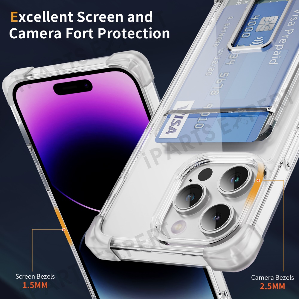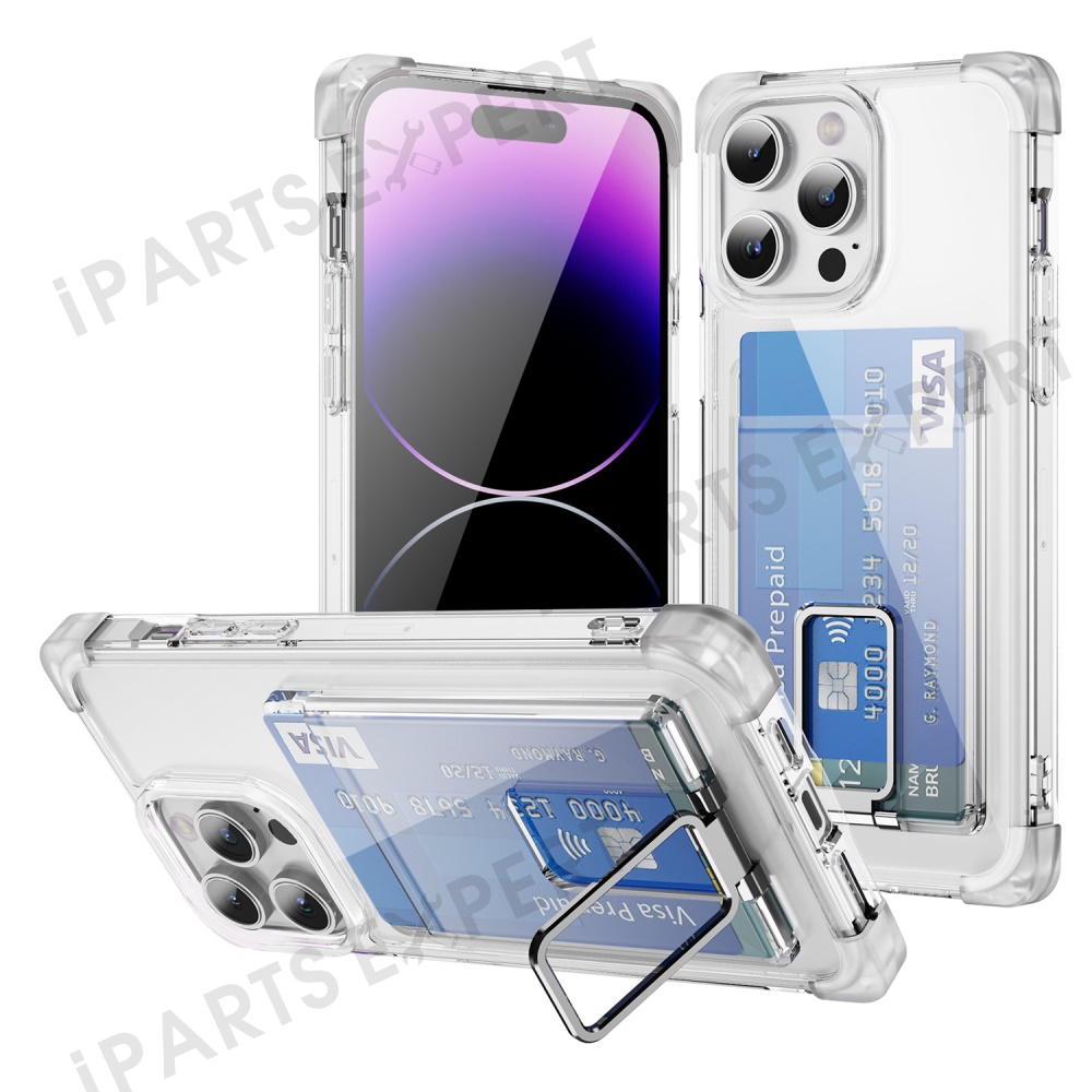 For iPhone 14 Pro Case Reinforced Corners TPU + Acrylic Phone Cover with Kickstand Card Holder - Transparent