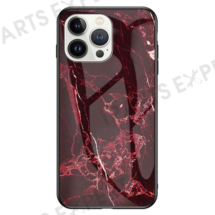 For iPhone 14 Pro Max 6.7 inch Drop-proof Phone Case Marble Pattern Tempered Glass + PC + TPU Hybrid Cover - Blood Red Marble