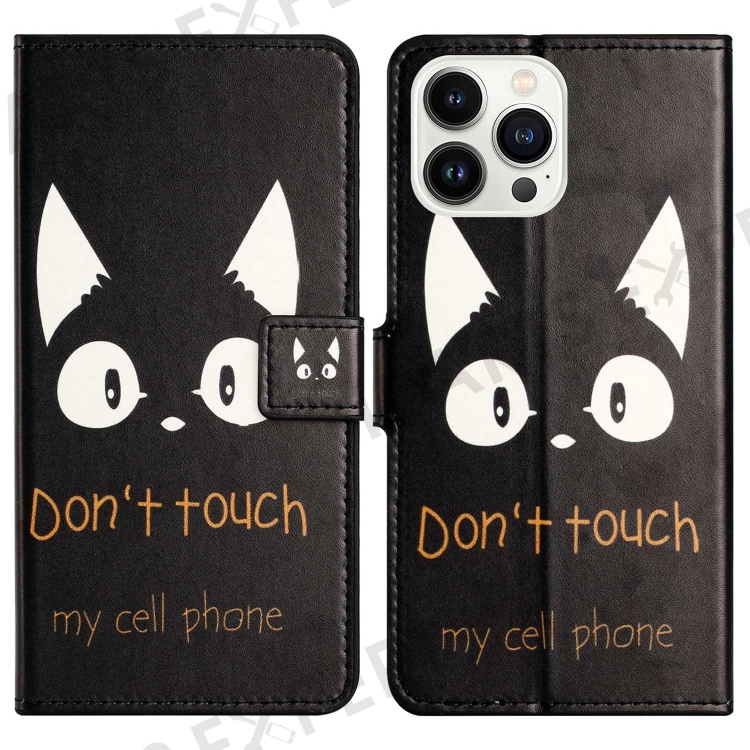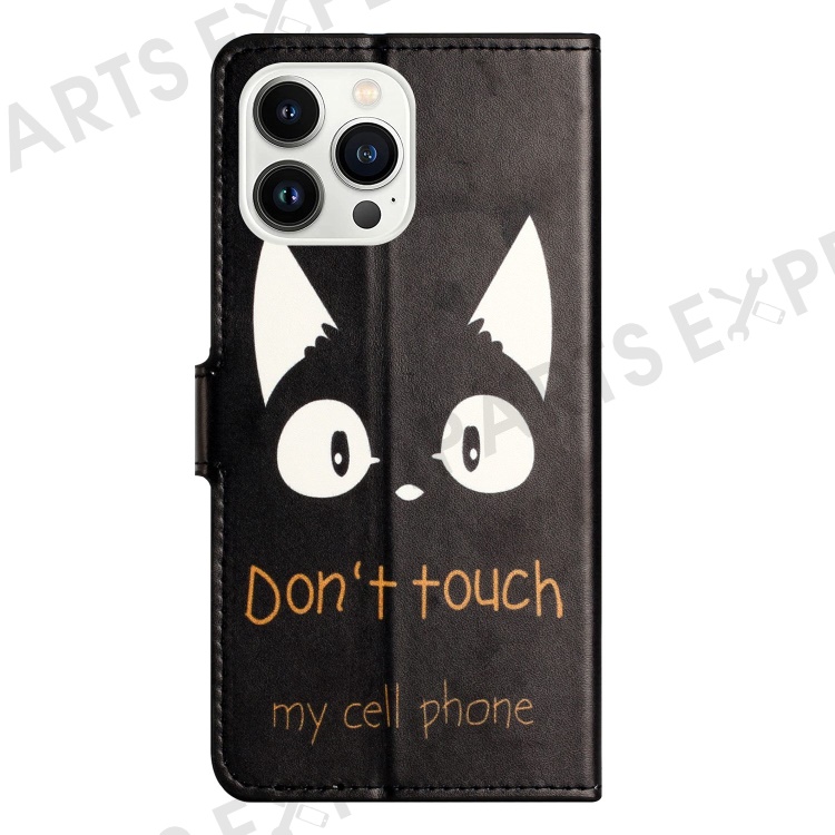 For iPhone 14 Pro Max 6.7 inch Pattern Printing Wallet Case PU Leather Stand Magnetic Closure Folio Flip Cover - Don't Touch My Cell Phone