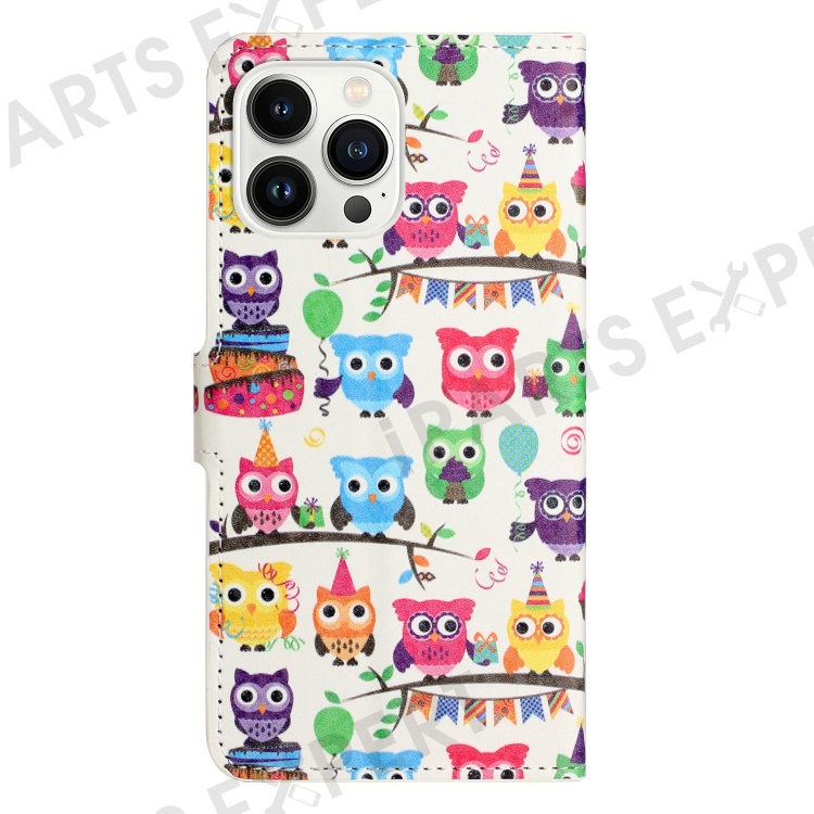 For iPhone 14 Pro Max 6.7 inch Pattern Printing Wallet Case PU Leather Stand Magnetic Closure Folio Flip Cover - Owls Sticker