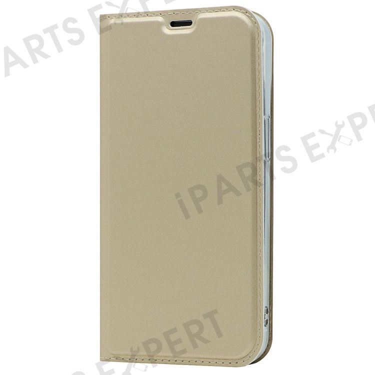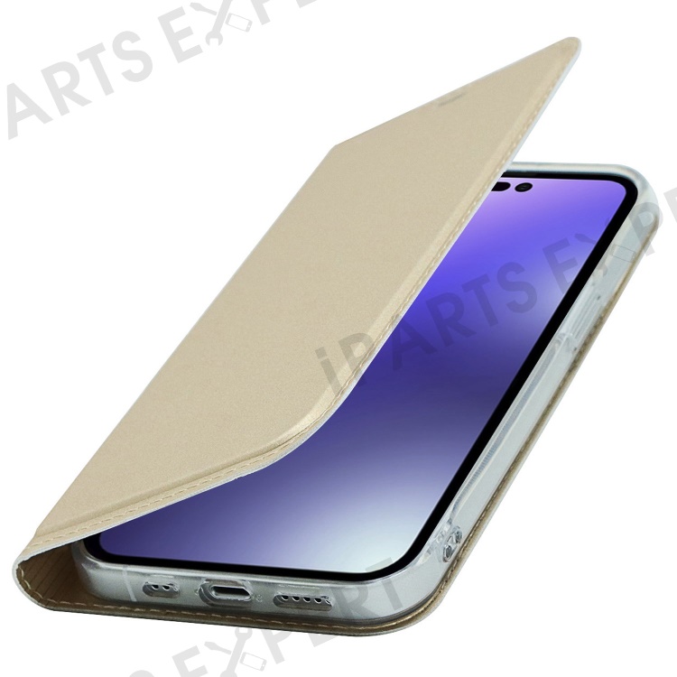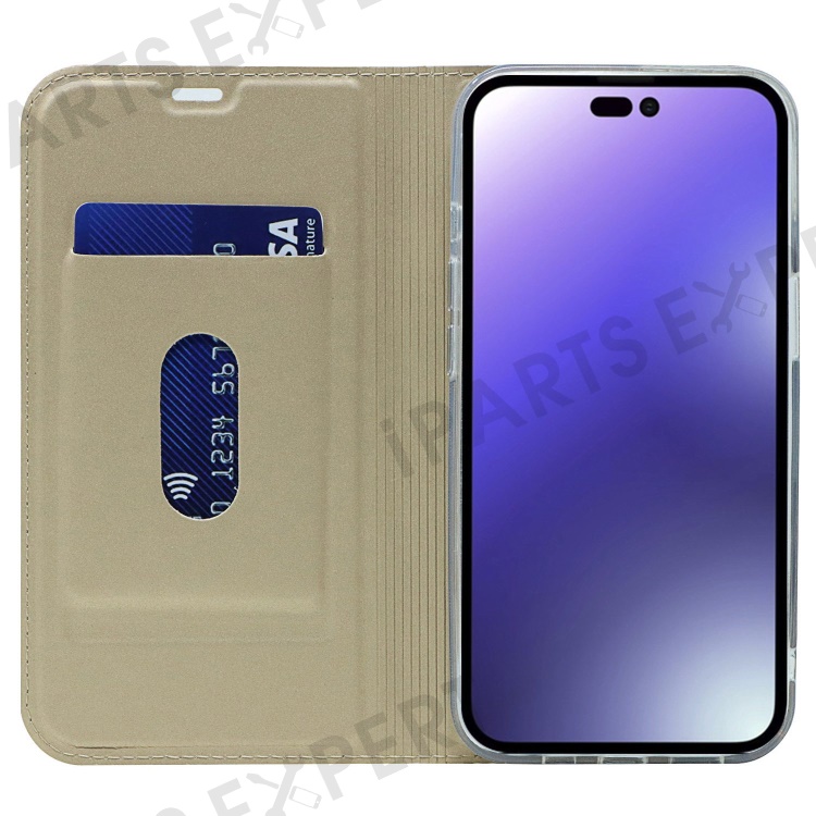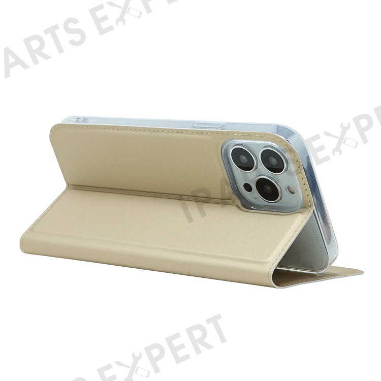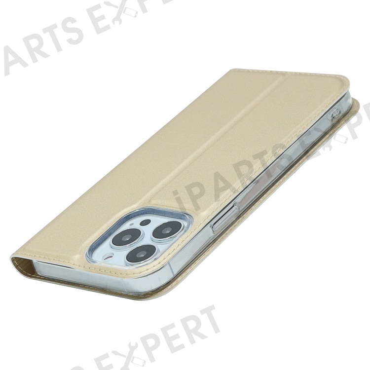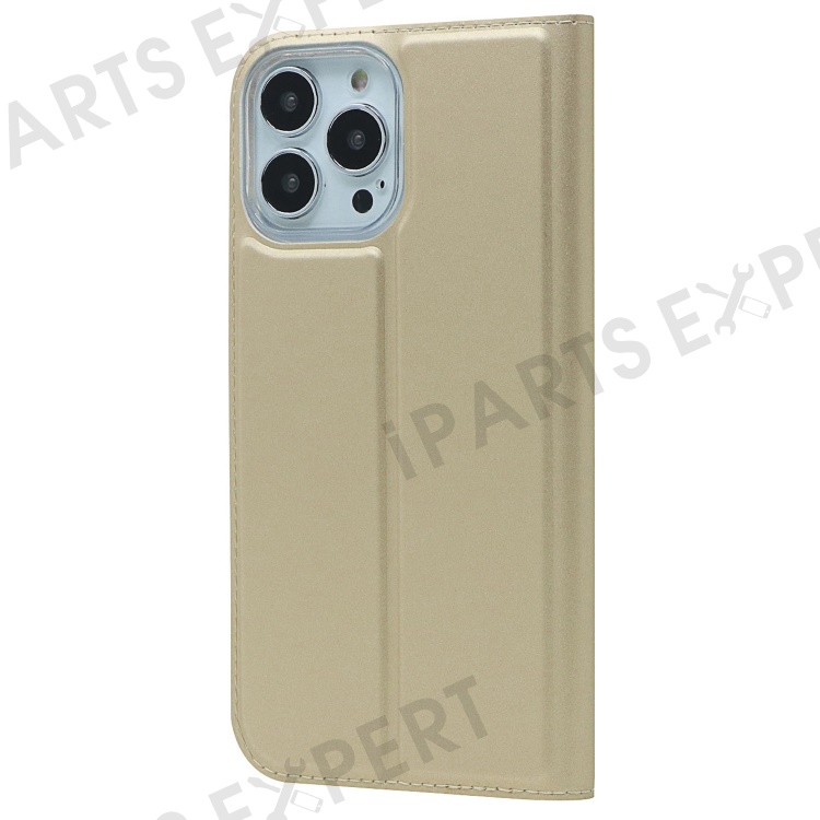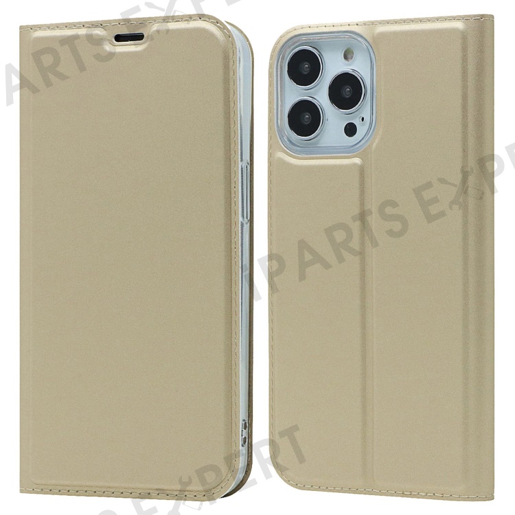 For iPhone 14 Pro Max 6.7 inch PU Leather Stand Case Card Slot Design Magnetic Adsorption Shockproof Phone Cover - Gold