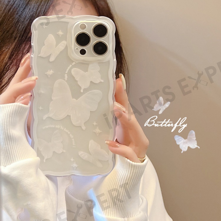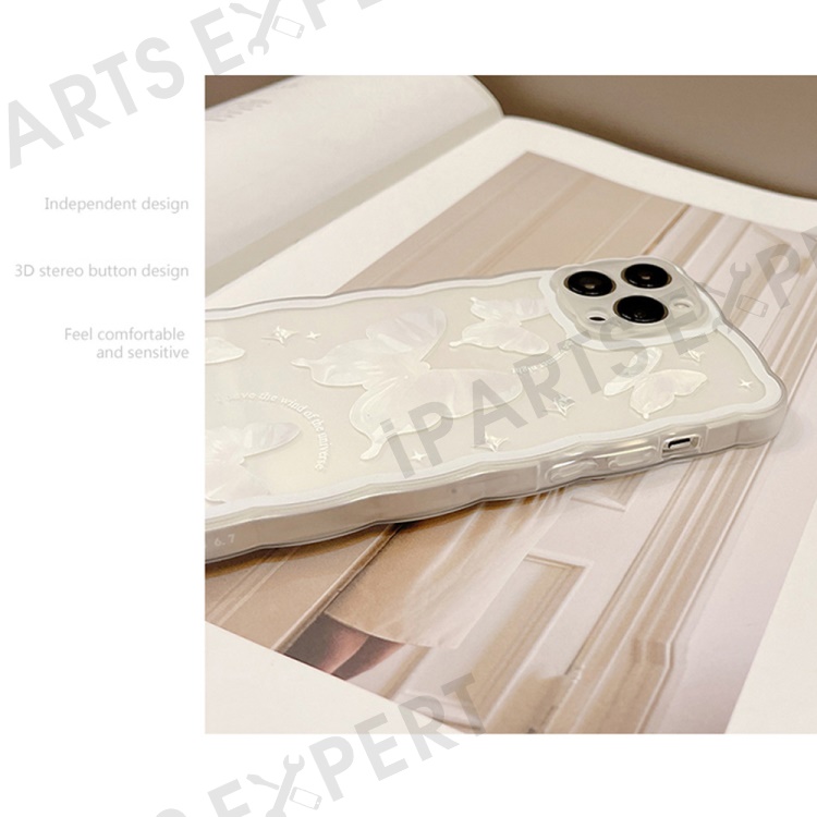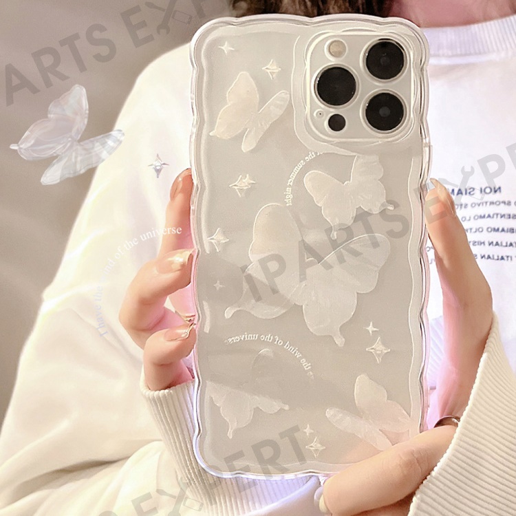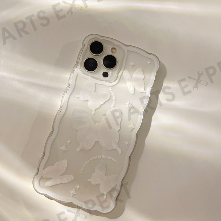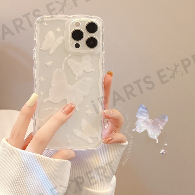 For iPhone 14 Pro Max Butterfly Pattern TPU Case Wavy Edge Protective Clear Phone Cover