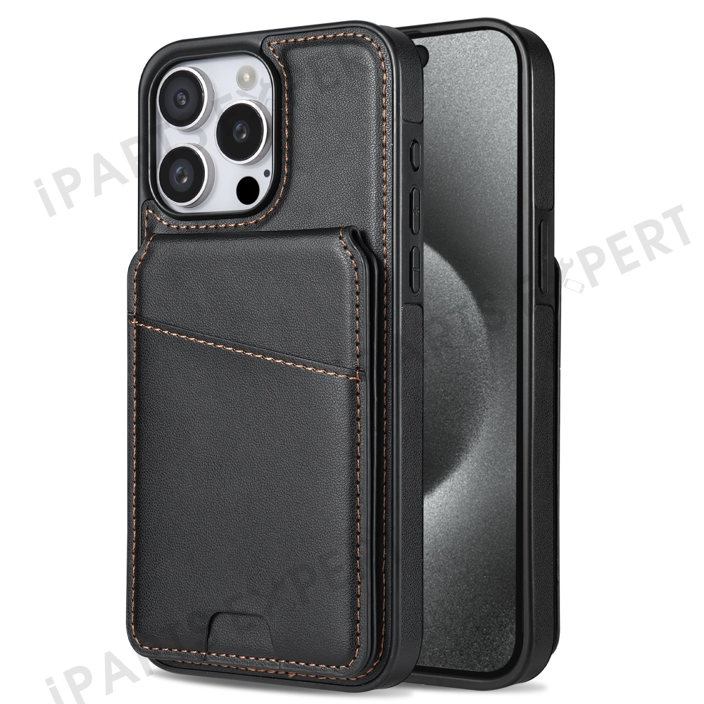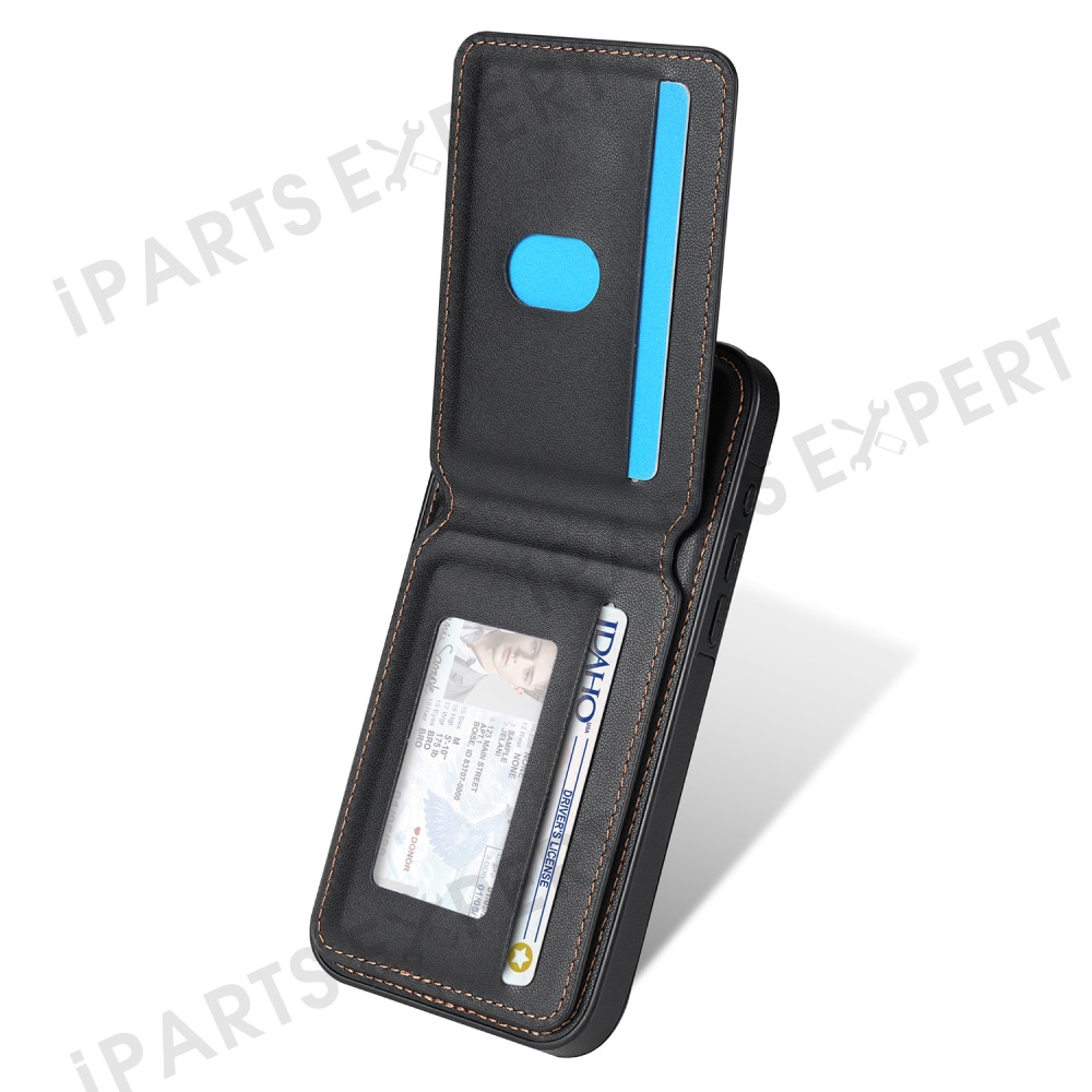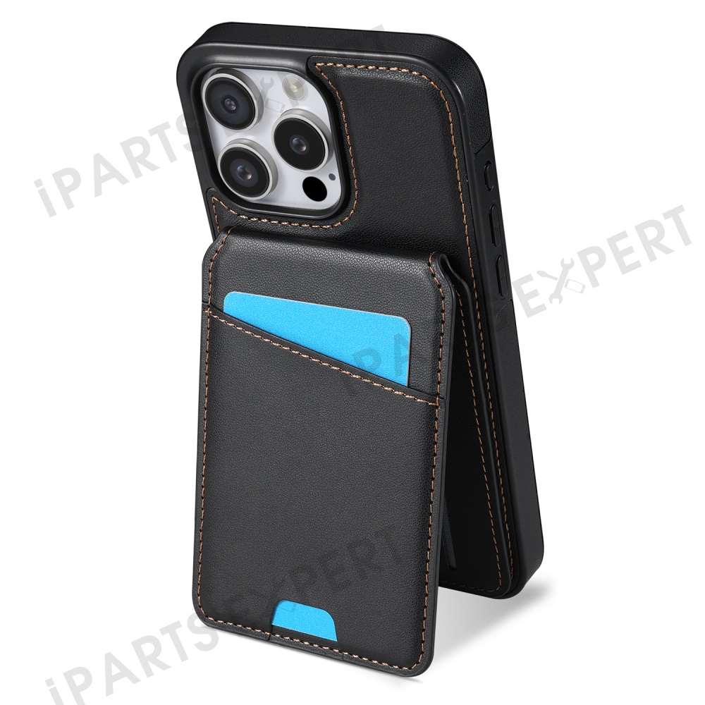 For iPhone 14 Pro Max Case Compatible with MagSafe Detachable Card Holder Kickstand Leather Phone Back Cover - Black