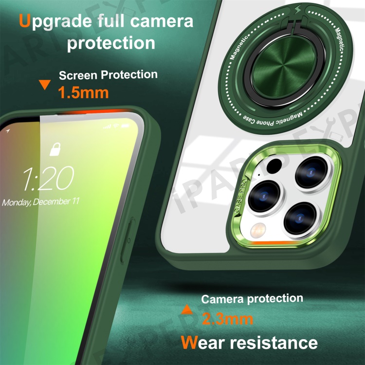 For iPhone 14 Pro Max Case Compatible with MagSafe Ring Kickstand PC+TPU Phone Cover - Blackish Green