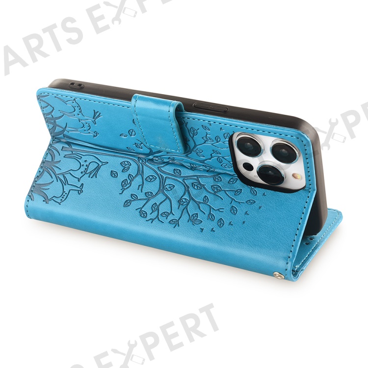 For iPhone 14 Pro Max Case Magnetic PU Leather+TPU Imprinted Phone Cover with Stand - Blue