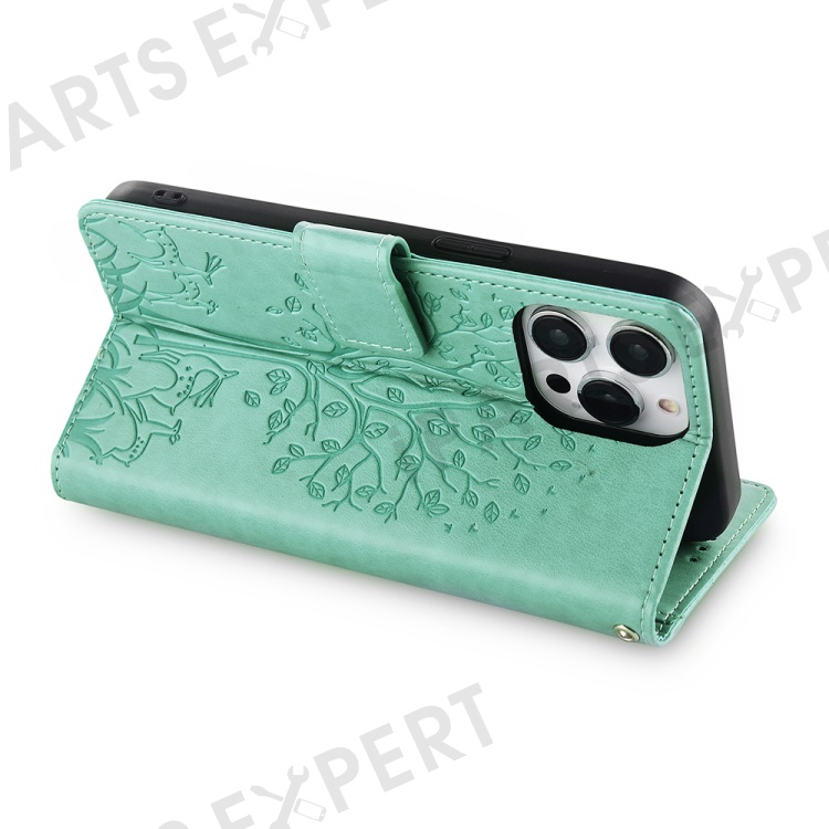 For iPhone 14 Pro Max Case Magnetic PU Leather+TPU Imprinted Phone Cover with Stand - Green