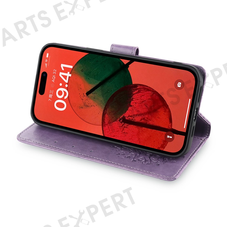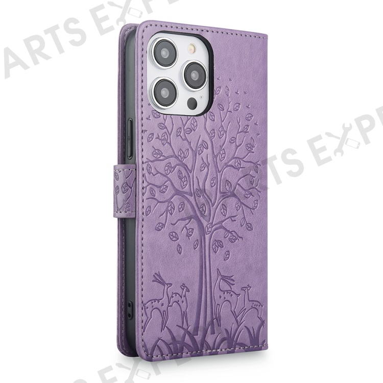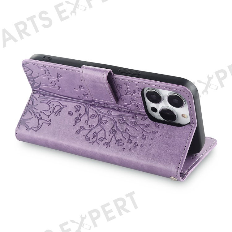 For iPhone 14 Pro Max Case Magnetic PU Leather+TPU Imprinted Phone Cover with Stand - Purple