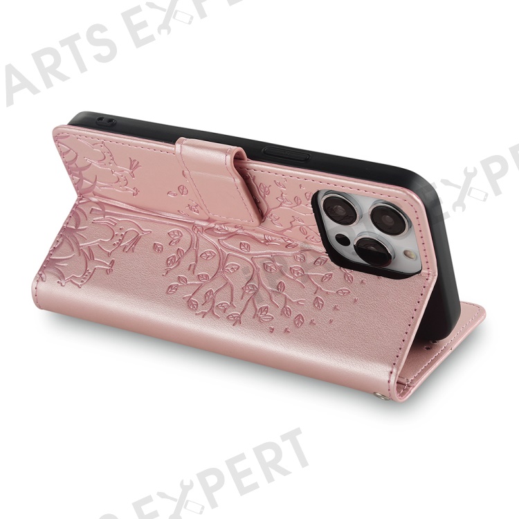 For iPhone 14 Pro Max Case Magnetic PU Leather+TPU Imprinted Phone Cover with Stand - Rose Gold