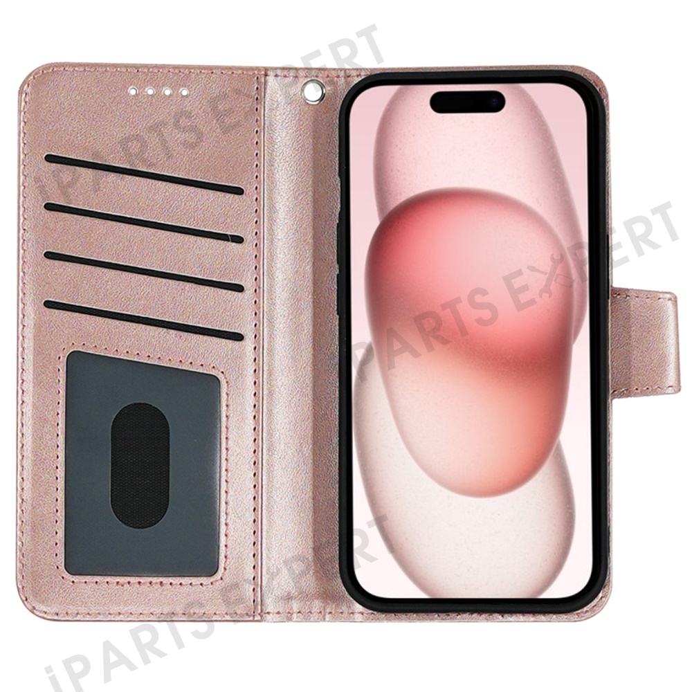 For iPhone 14 Pro Max Case Stand Card Holder Wallet Leather Phone Cover - Rose Gold
