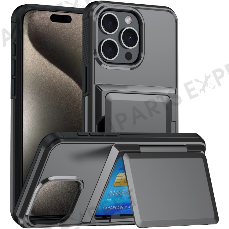 For iPhone 14 Pro Max Cases Card Slot TPU+PC Kickstand Phone Case - Grey