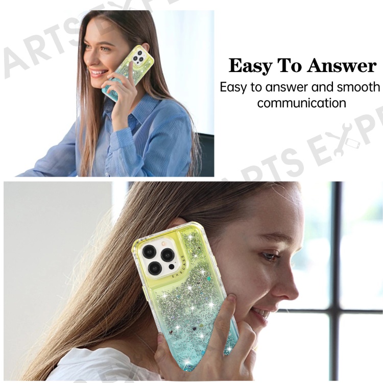 For iPhone 14 Pro Max Cell Phone Case Slim-Fit TPU+PC Glitter Gradient Quicksand Back Shell - Gold+Light Blue