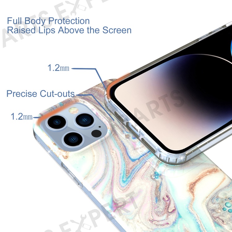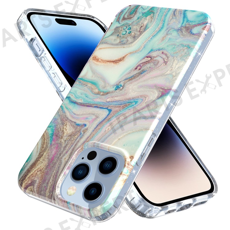 For iPhone 14 Pro Max GW18 Shockproof Phone Case IMD Marble Pattern PC+TPU Protective Mobile Phone Cover - Style E