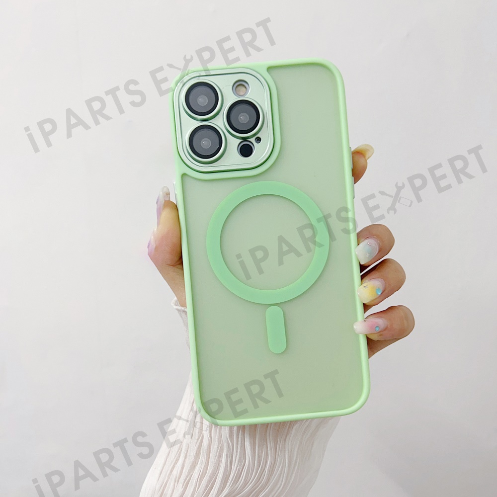 For iPhone 14 Pro Max Magnetic Case with Lens Film / Detachable Lens Frame Hybrid Phone Back Cover - Mint Green