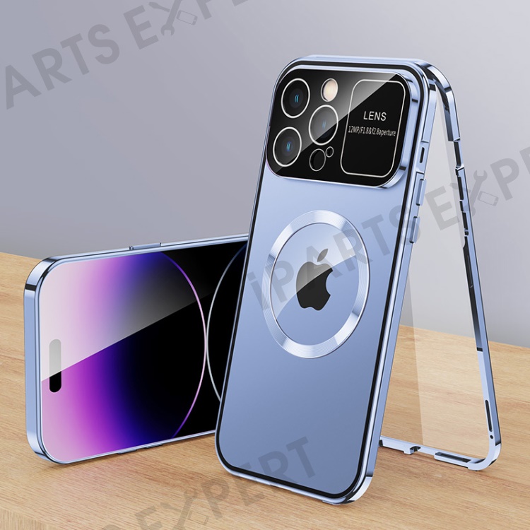 For iPhone 14 Pro Max PC + Aluminium Alloy Hybrid Phone Case All-Wrapped Cover Compatible with MagSafe with Tempered Glass Film - Blue