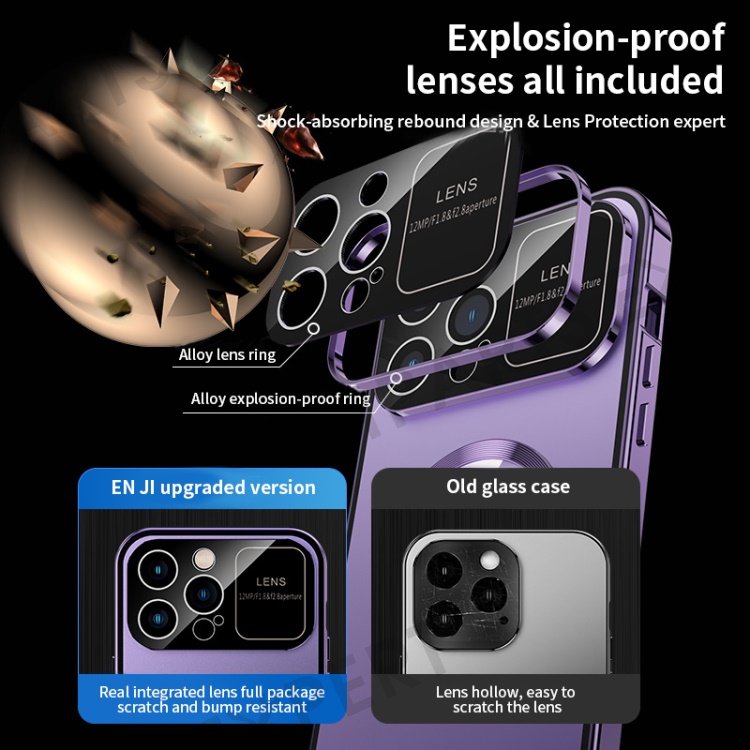 For iPhone 14 Pro Max PC + Aluminium Alloy Hybrid Phone Case All-Wrapped Cover Compatible with MagSafe with Tempered Glass Film - Purple