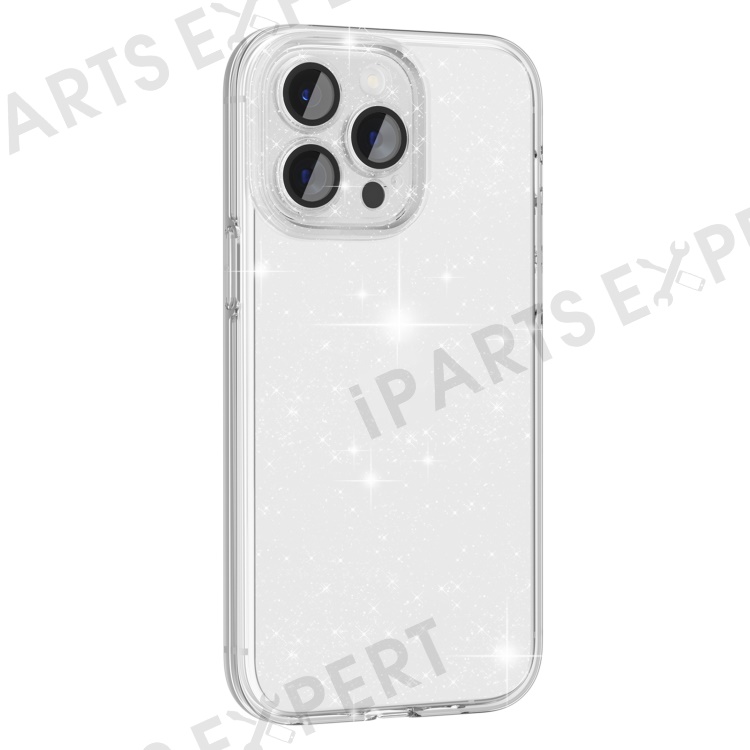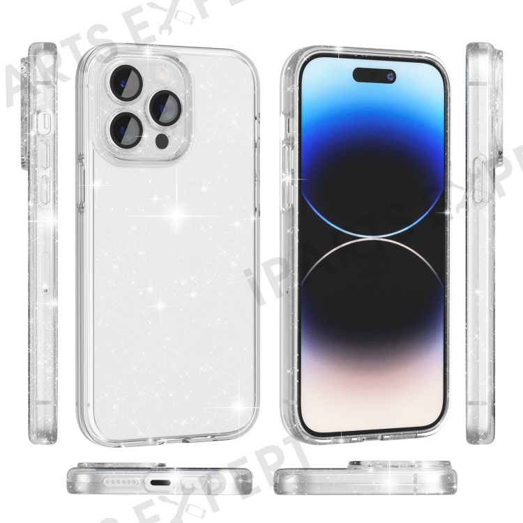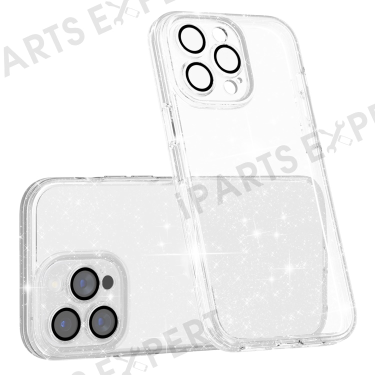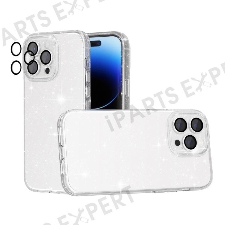 For iPhone 14 Pro Max Soft TPU + Hard PC Phone Case Anti-Scratch Cover with Built-in Camera Lens Protective Film - Glittery White