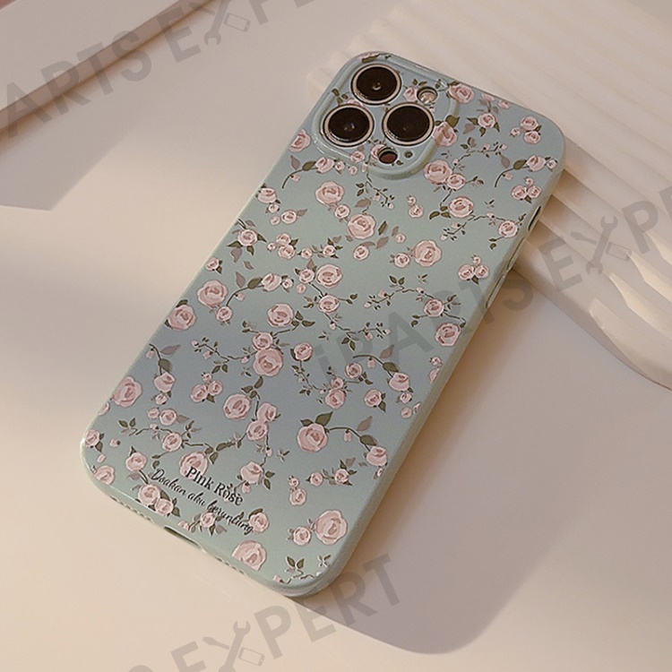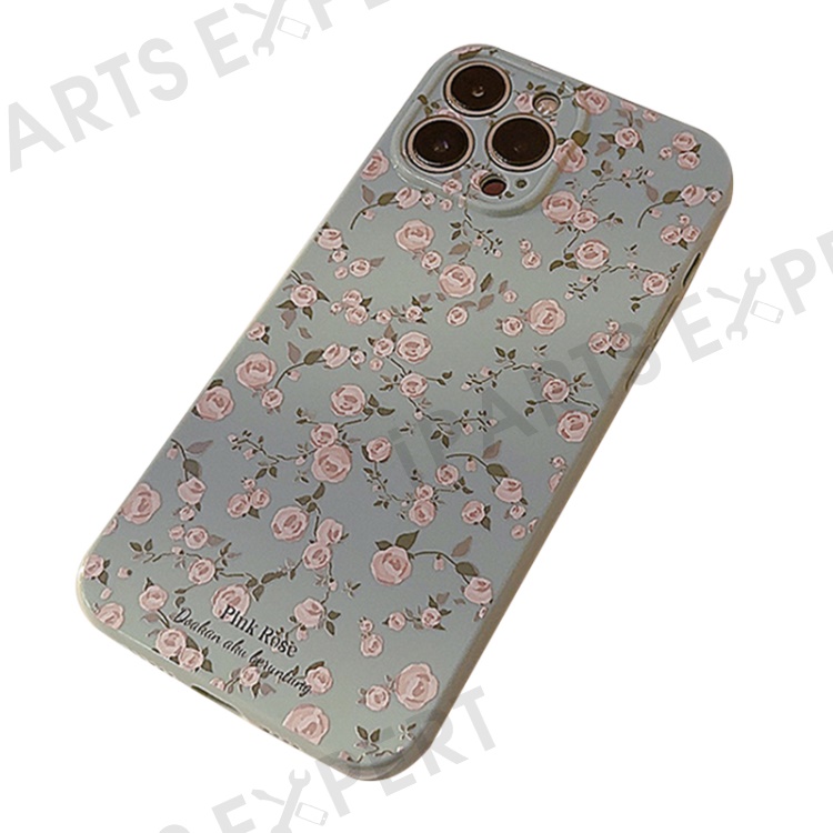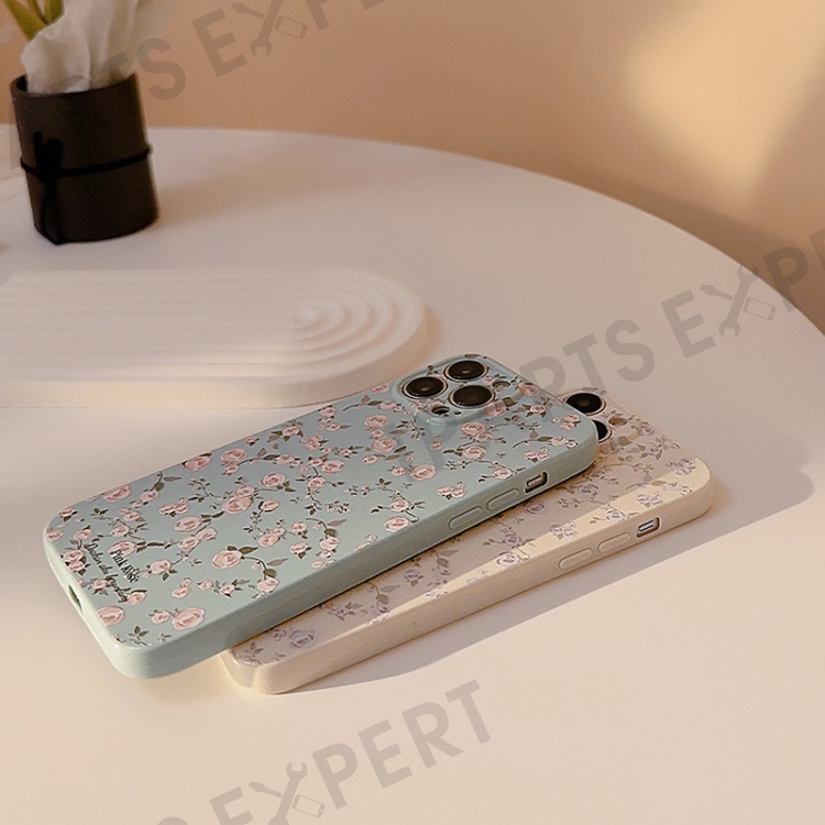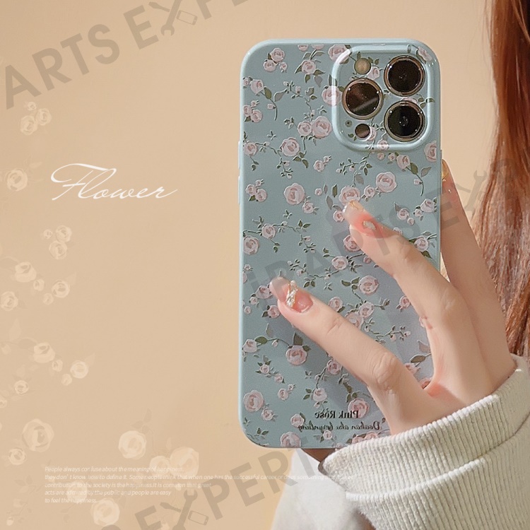 For iPhone 14 Pro Max Soft TPU Phone Case Retro Flower Pattern Protective Phone Cover - Blue
