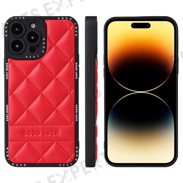 For iPhone 14 Pro PU Leather + PC + TPU Phone Cover Full Body Protection Rhombic Grid Texture Phone Case - Red