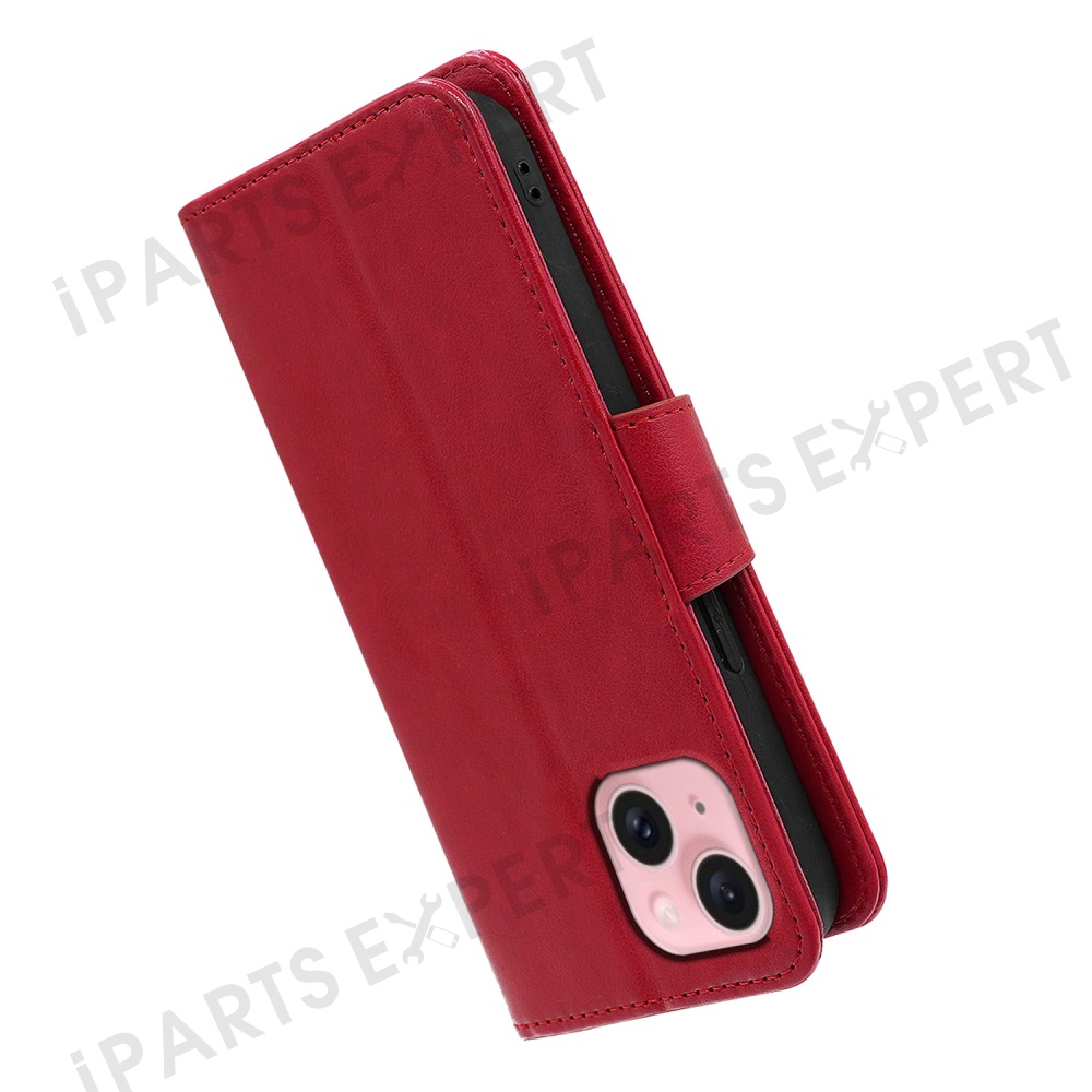 For iPhone 15 Case Stand Card Holder Wallet Leather Phone Cover - Red