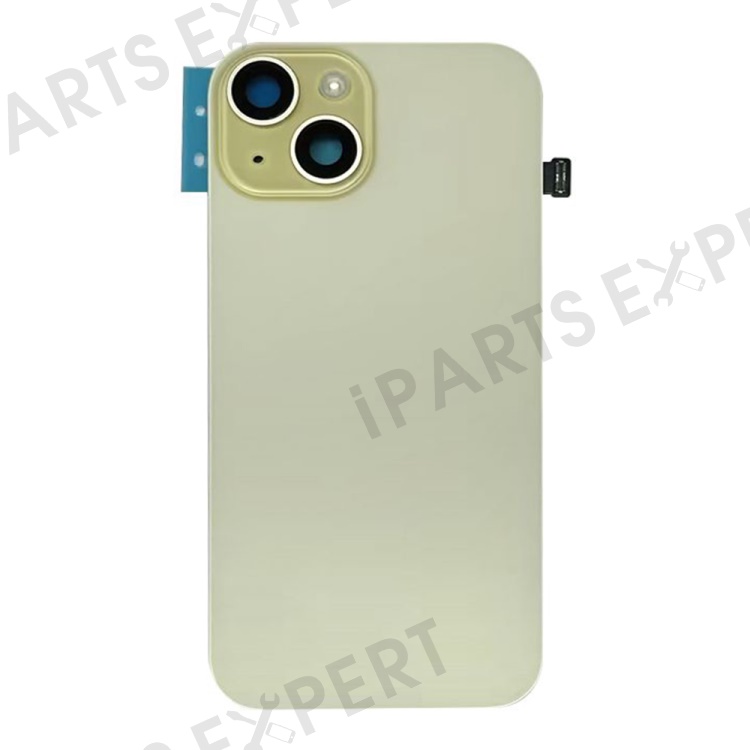 For iPhone 15 Battery Housing Cover + Camera Lens Cover + Bracket + Wireless Charging Port Cable - Yellow