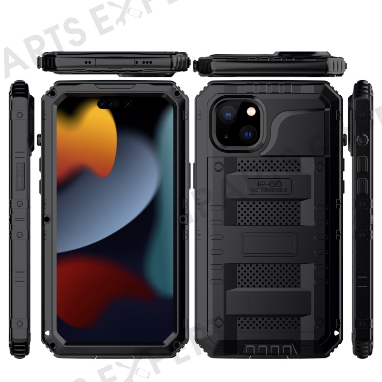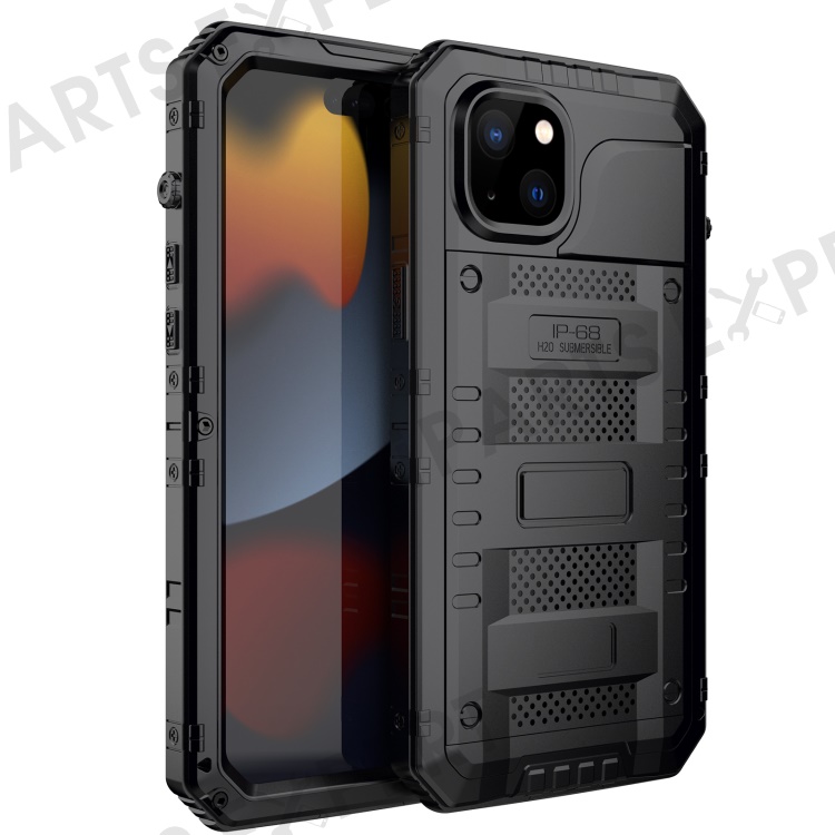 For iPhone 15 IP68 Waterproof Case Drop-proof PC+Silicone Cover with Screen Protector - Black