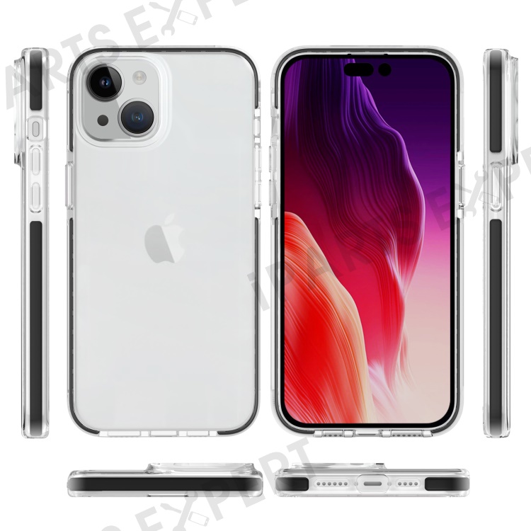 For iPhone 15 Plus Anti-Scratch Phone Cover Clear Slim Dustproof TPU+TPE Mobile Phone Case Shell - Transparent Black
