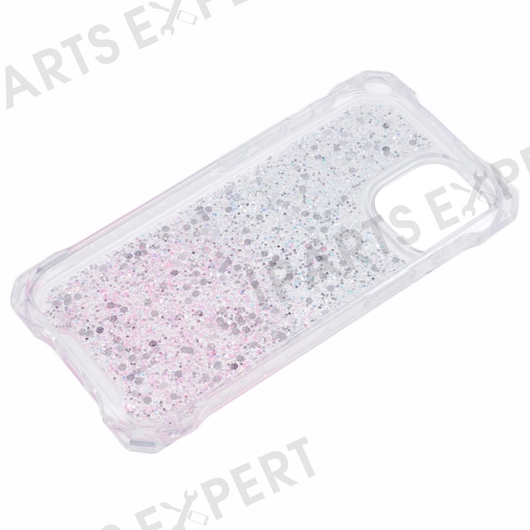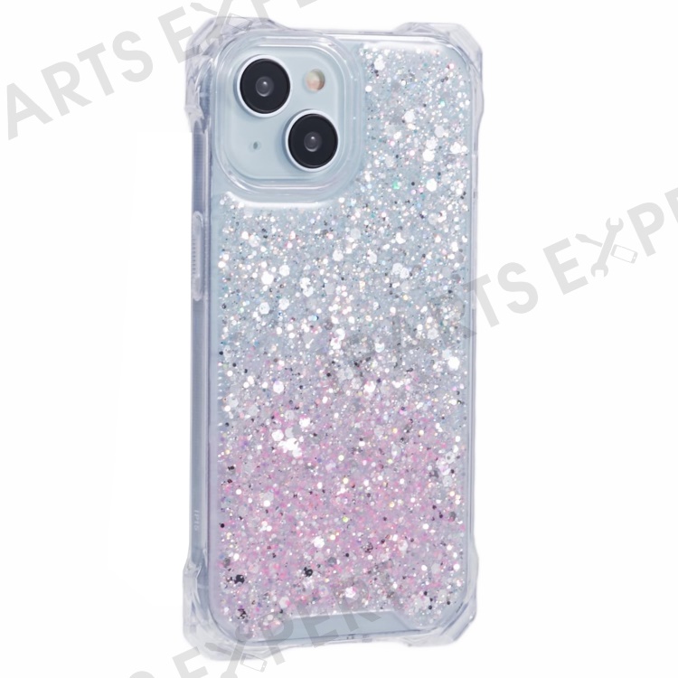 For iPhone 15 Plus Cover Gradient Anti-scratch TPU+Acrylic Cell Phone Case - Silver+Pink