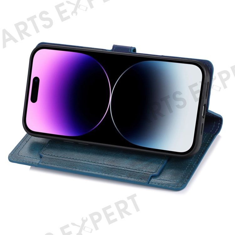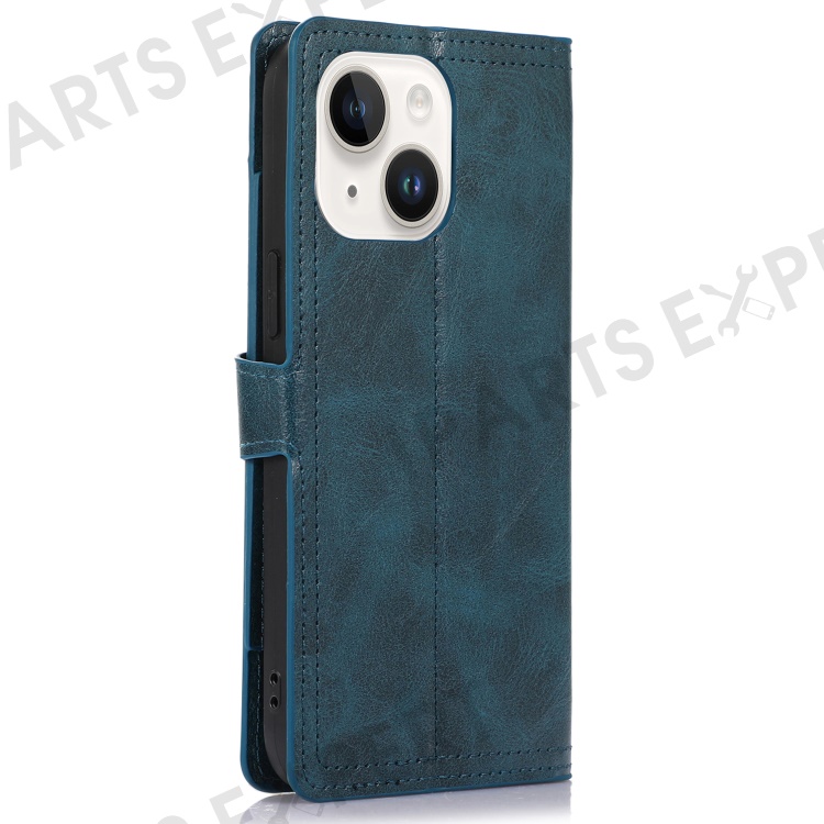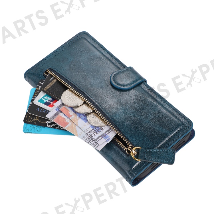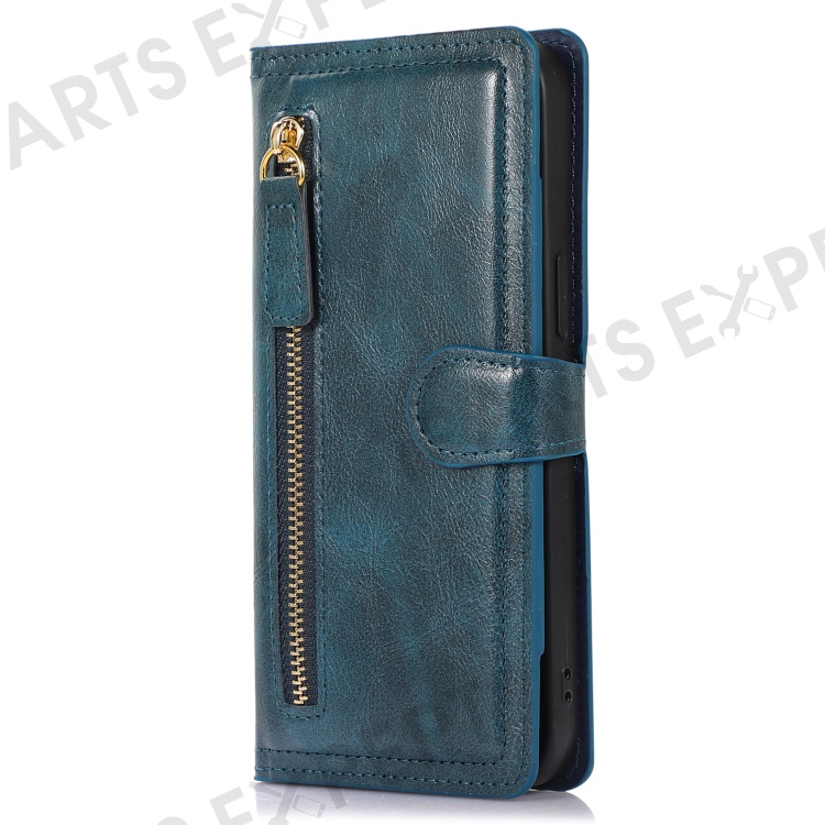 For iPhone 15 Plus Slim-Fit PU Leather Case Wallet Zipper Pocket Flip Stand Phone Cover Shell - Blue
