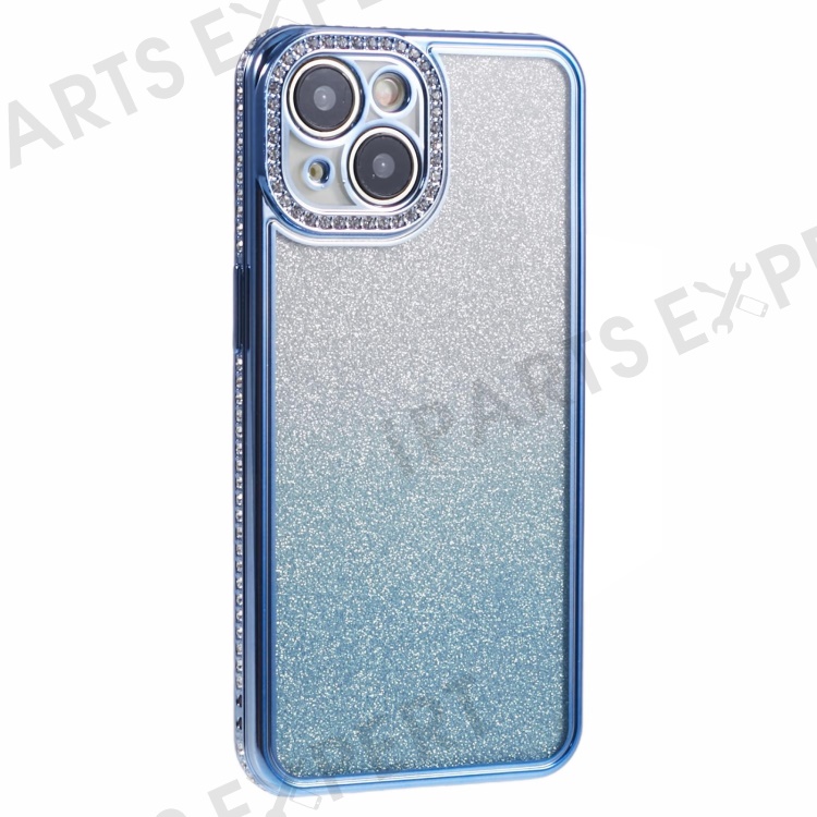 For iPhone 15 Plus TPU Case Shiny Rhinestone Gradient Glitter Phone Back Cover - Blue
