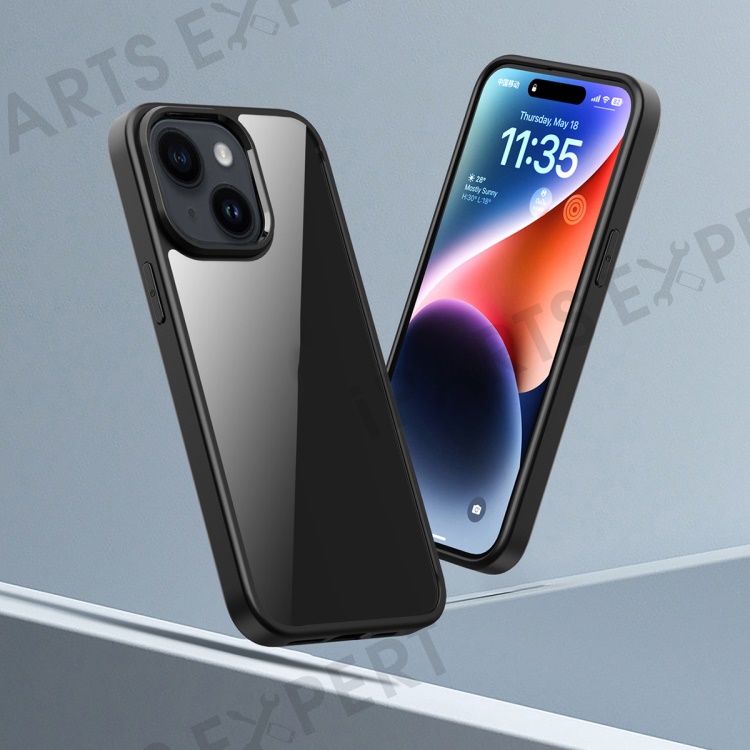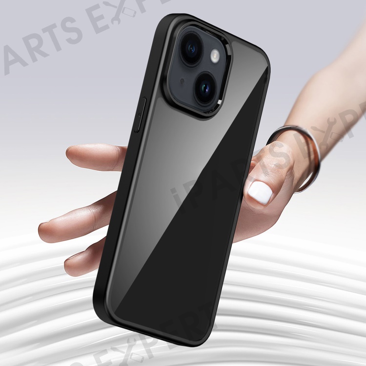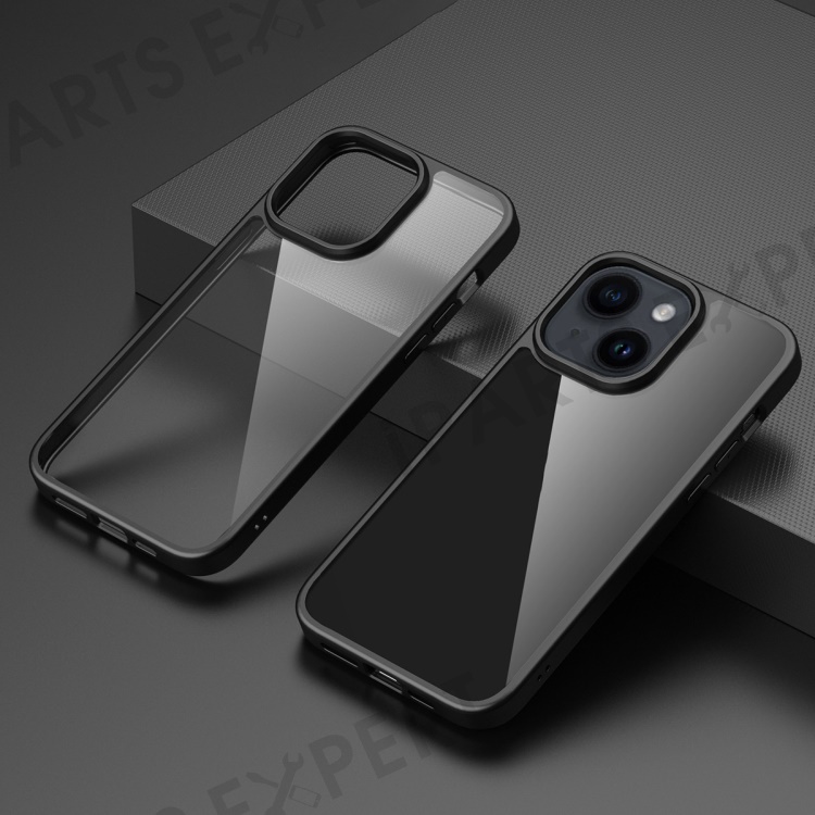 For iPhone 15 Plus Transparent PC Back + TPU Frame Protective Case Anti-drop Mobile Phone Cover - Black
