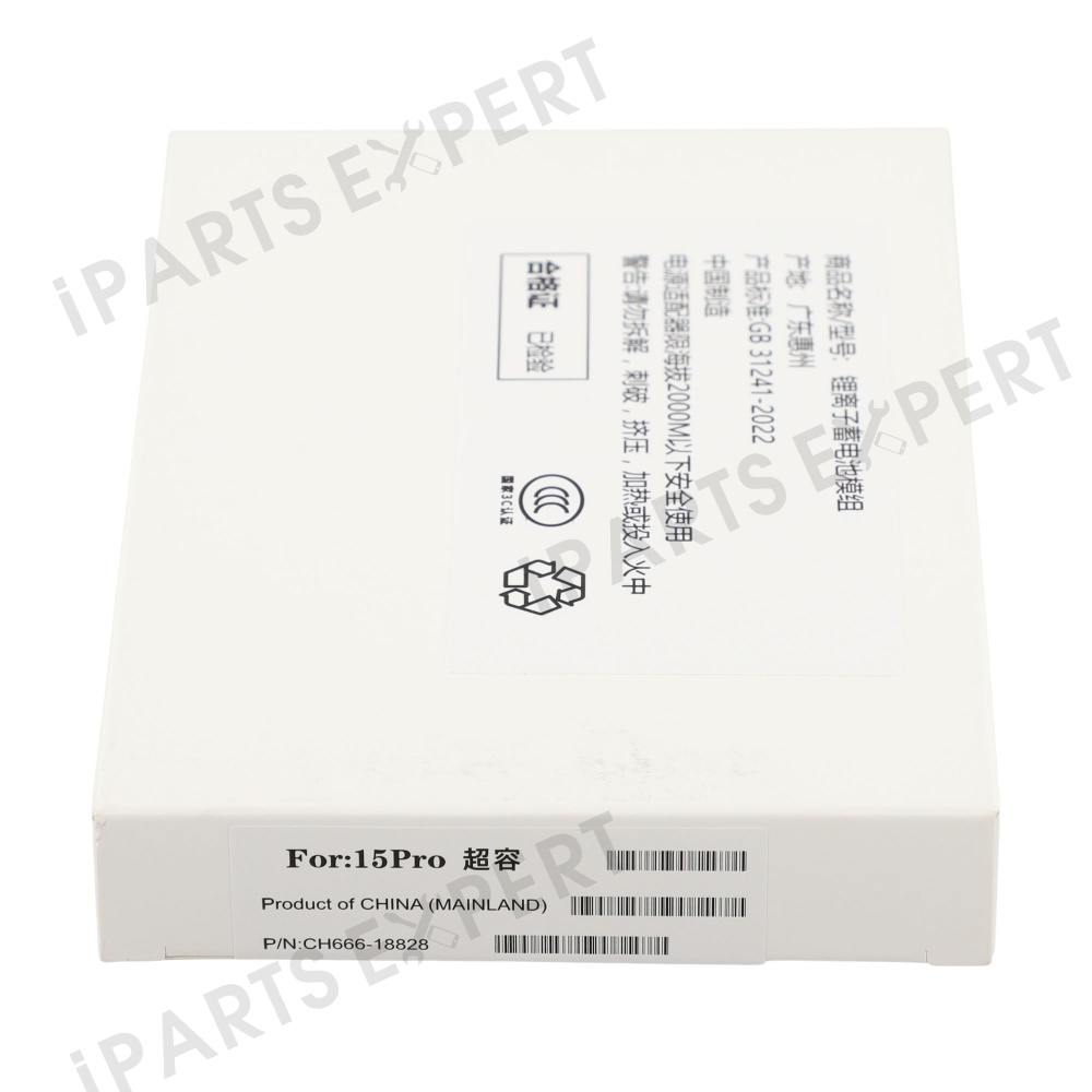 For iPhone 15 Pro Battery + Battery Adhesive Replacement Part 3500mAh High Capacity Cell Supports Latest System Diagnostics (Without Logo)