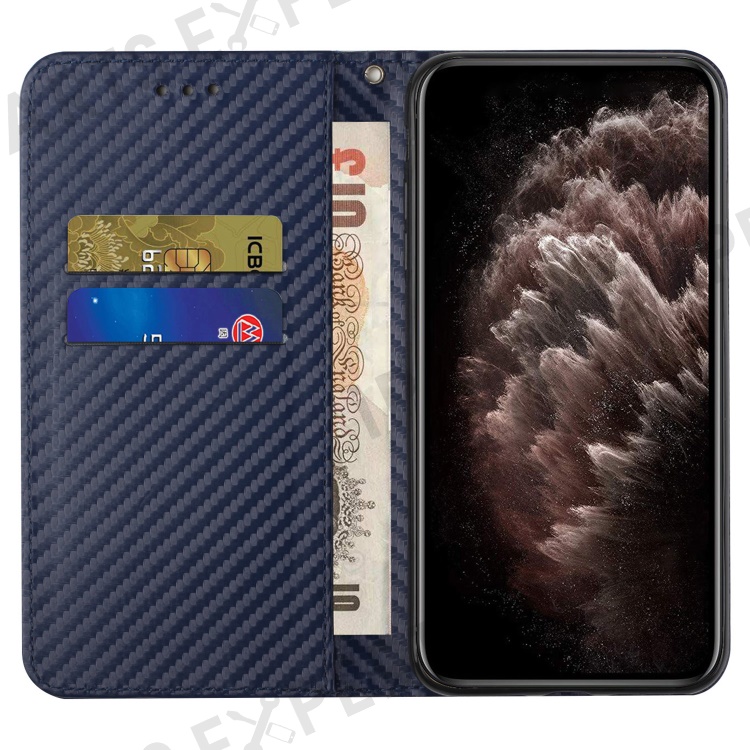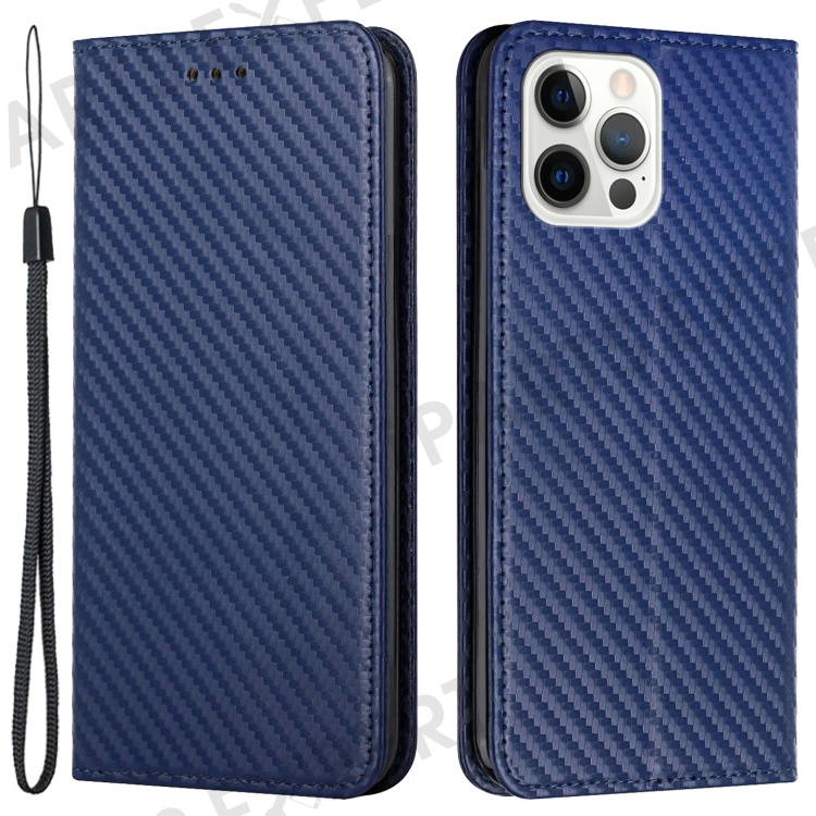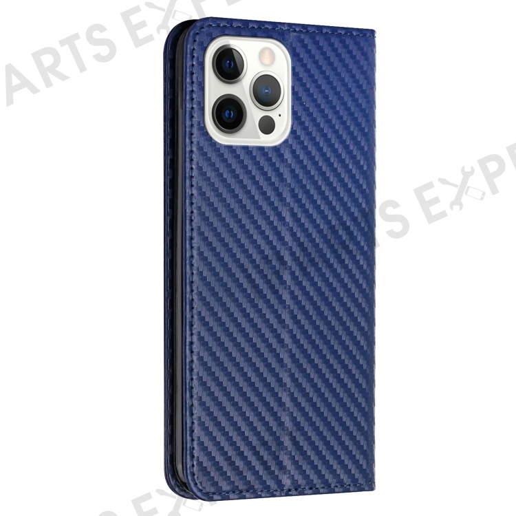 For iPhone 15 Pro Carbon Fiber Texture PU Leather+TPU Wallet Case Stand Phone Cover - Blue