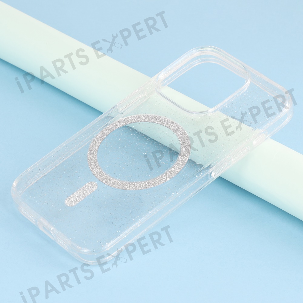 For iPhone 15 Pro Case Compatible with MagSafe 2.0mm PC + TPU Glitter Phone Cover - Transparent