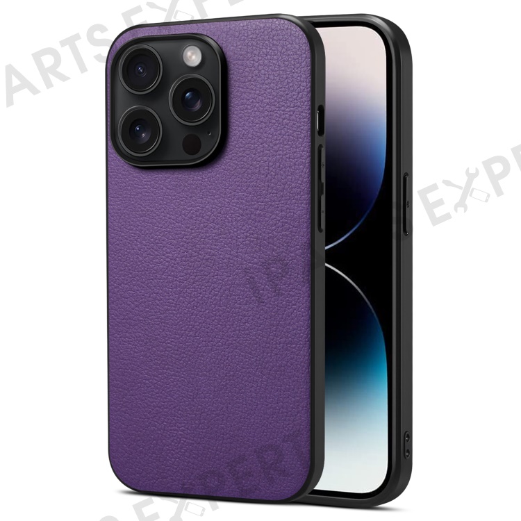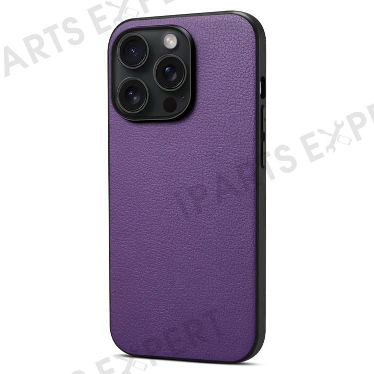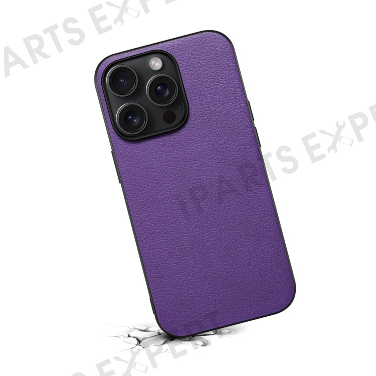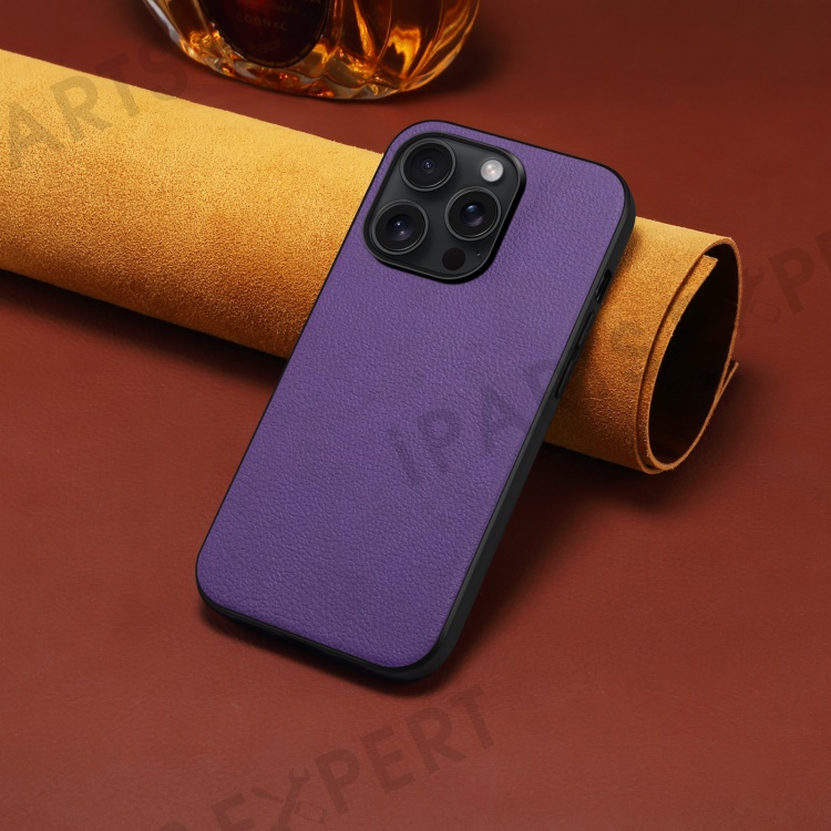 For iPhone 15 Pro Case PC+TPU+PU Leather Calf Texture Anti-drop Phone Cover - Purple