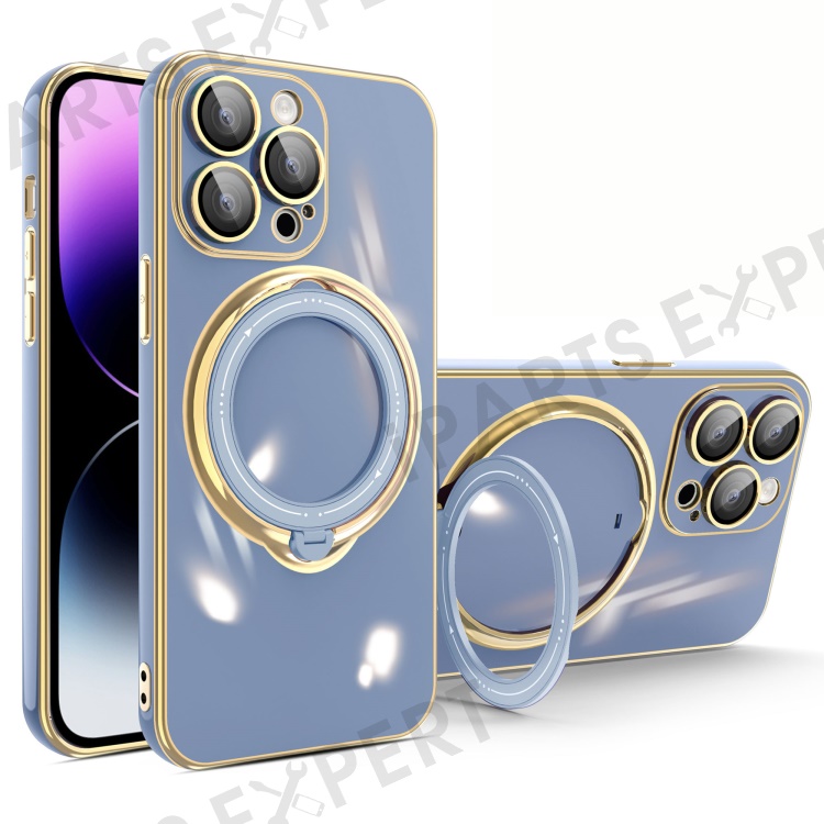 For iPhone 15 Pro Electroplating Phone Case Soft TPU Kickstand Protective Cover with Lens Protector - Blue