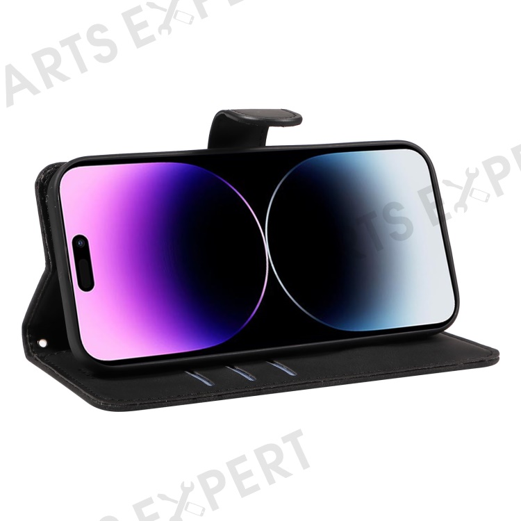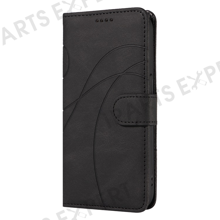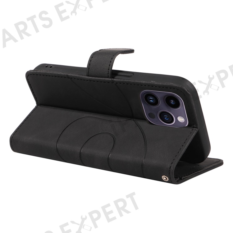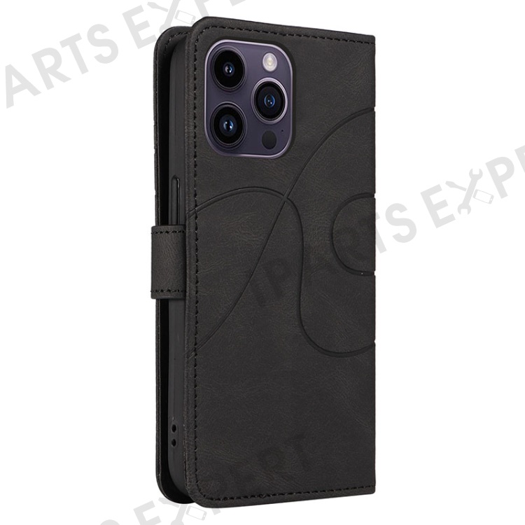 For iPhone 15 Pro Imprinted Line Wallet Stand Phone Case PU Leather + TPU Phone Cover - Black